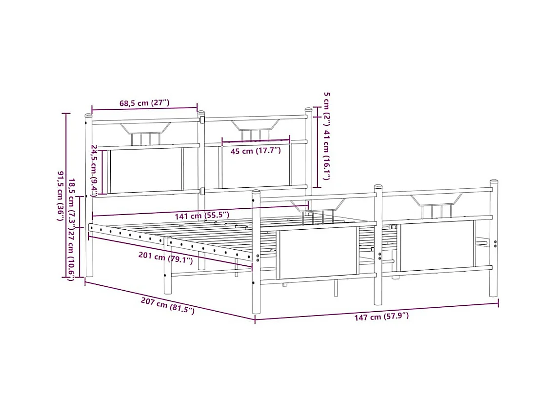 Giroletto senza Materaso in Metallo Rovere Fumo 140x200 cm