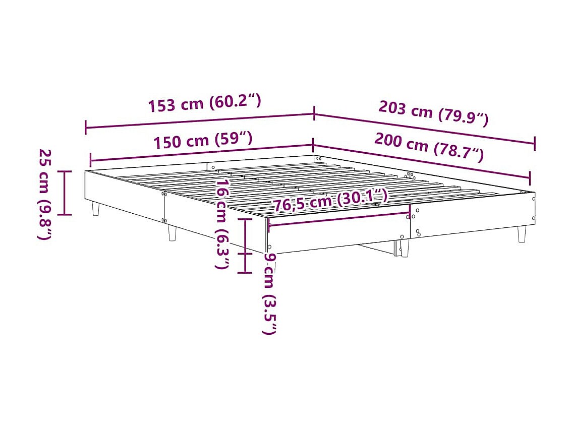 Giroletto senza Materaso in Metallo Rovere Marrone 150x200 cm