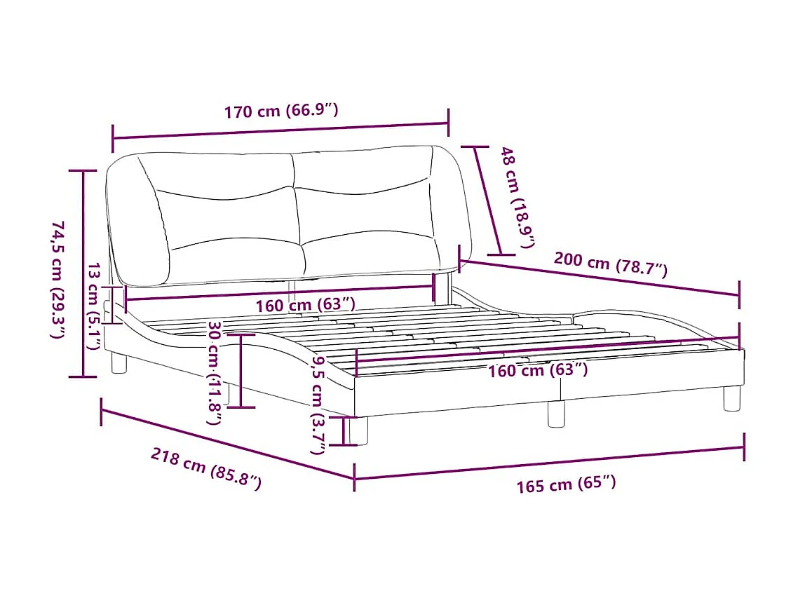 Giroletto senza Materasso Hvar Tortora 160x200 cm in Tessuto