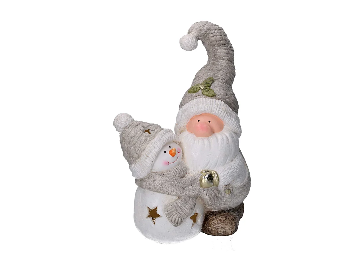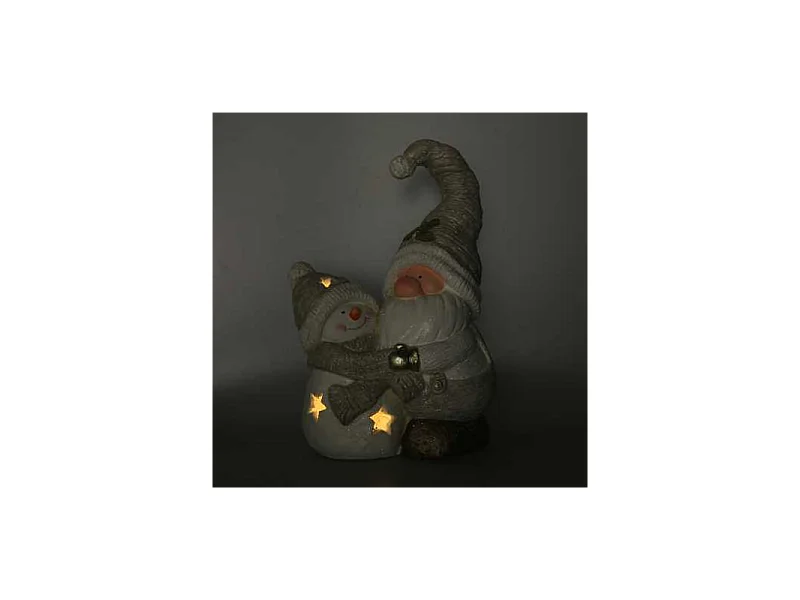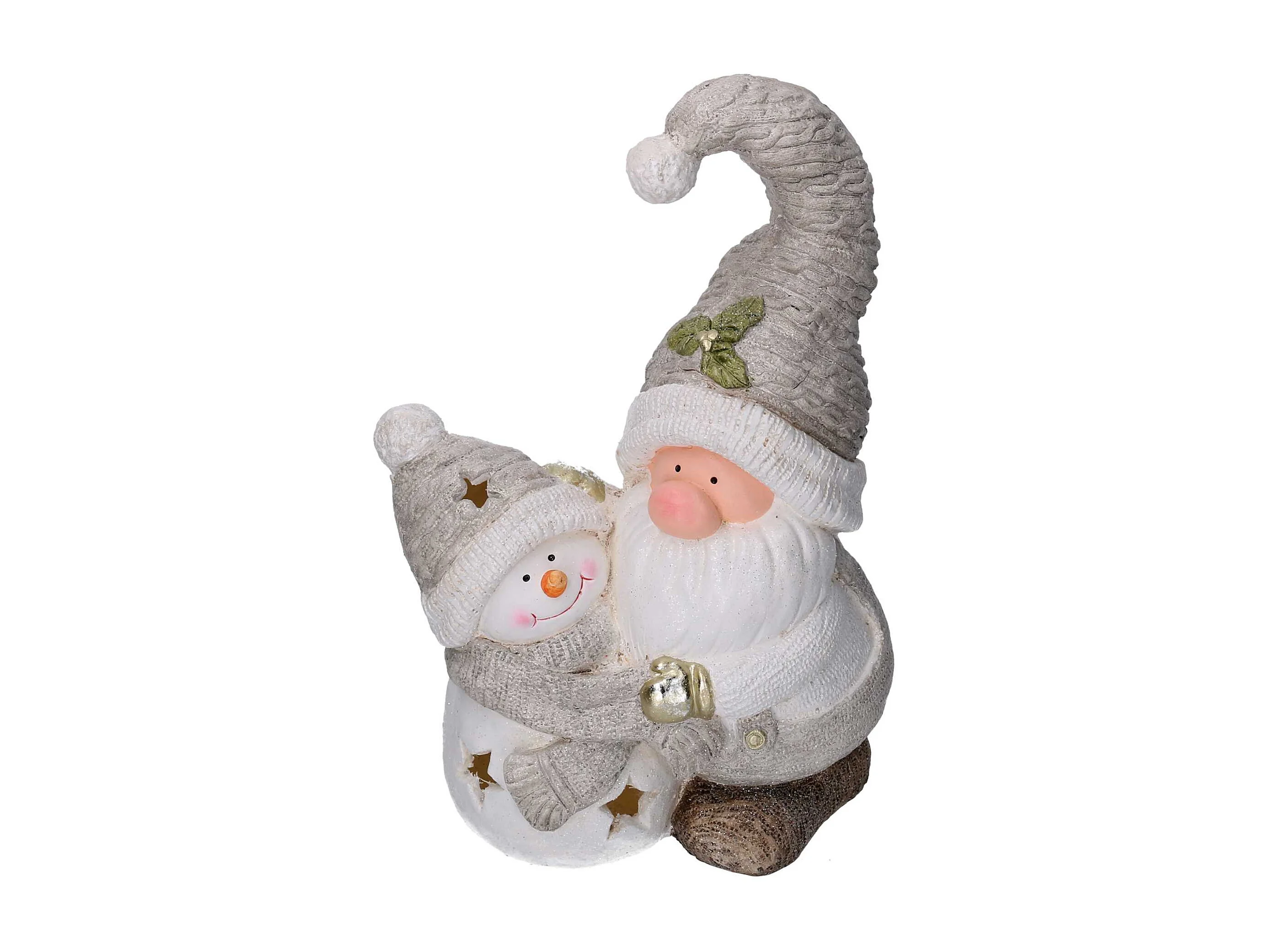 Gnomo resina e pupazzo di neve grigiocon led cm 27,5x18,5h42