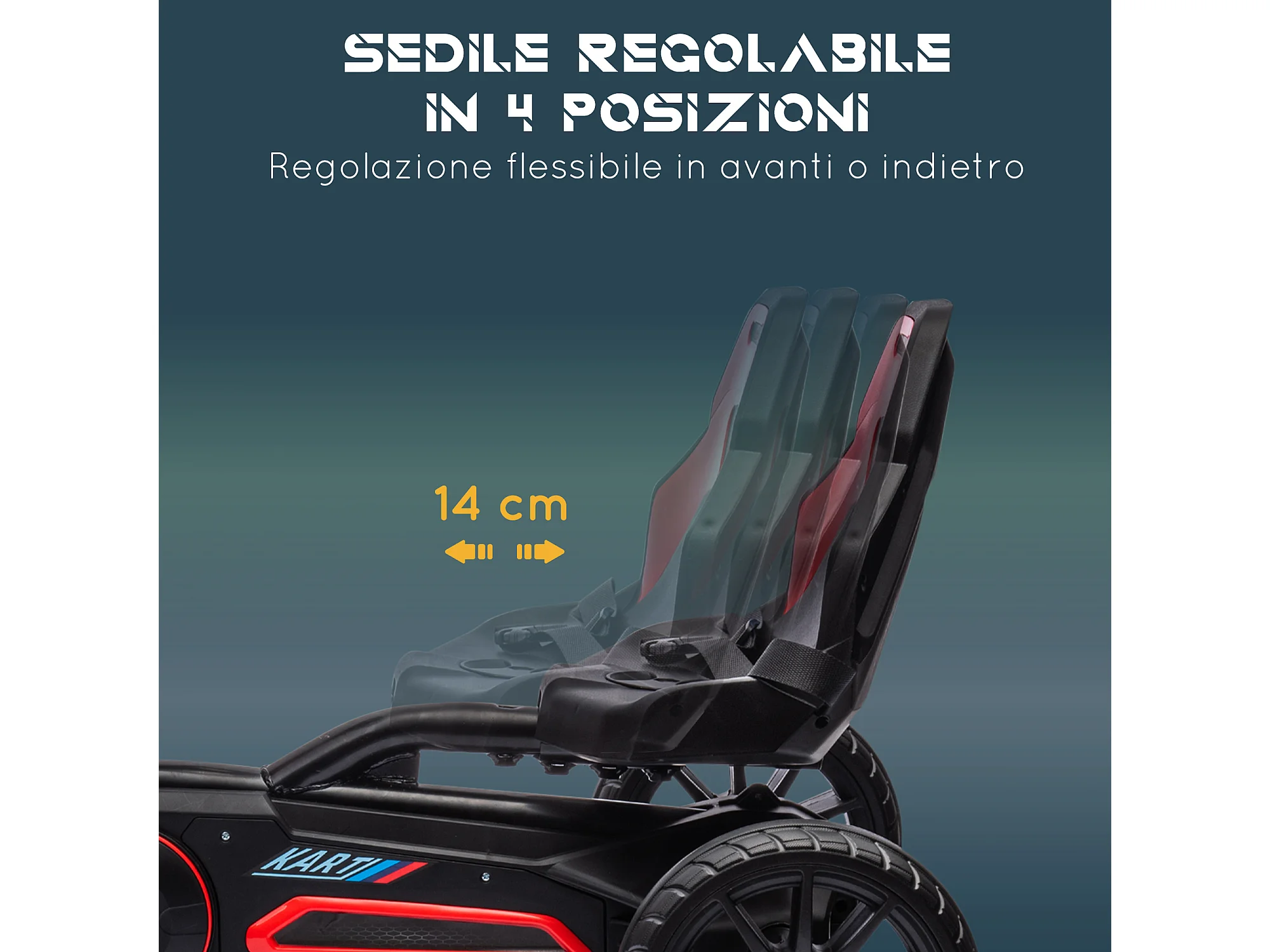 Go kart a pedali per bambini 5-12 anni con sedile regolabile