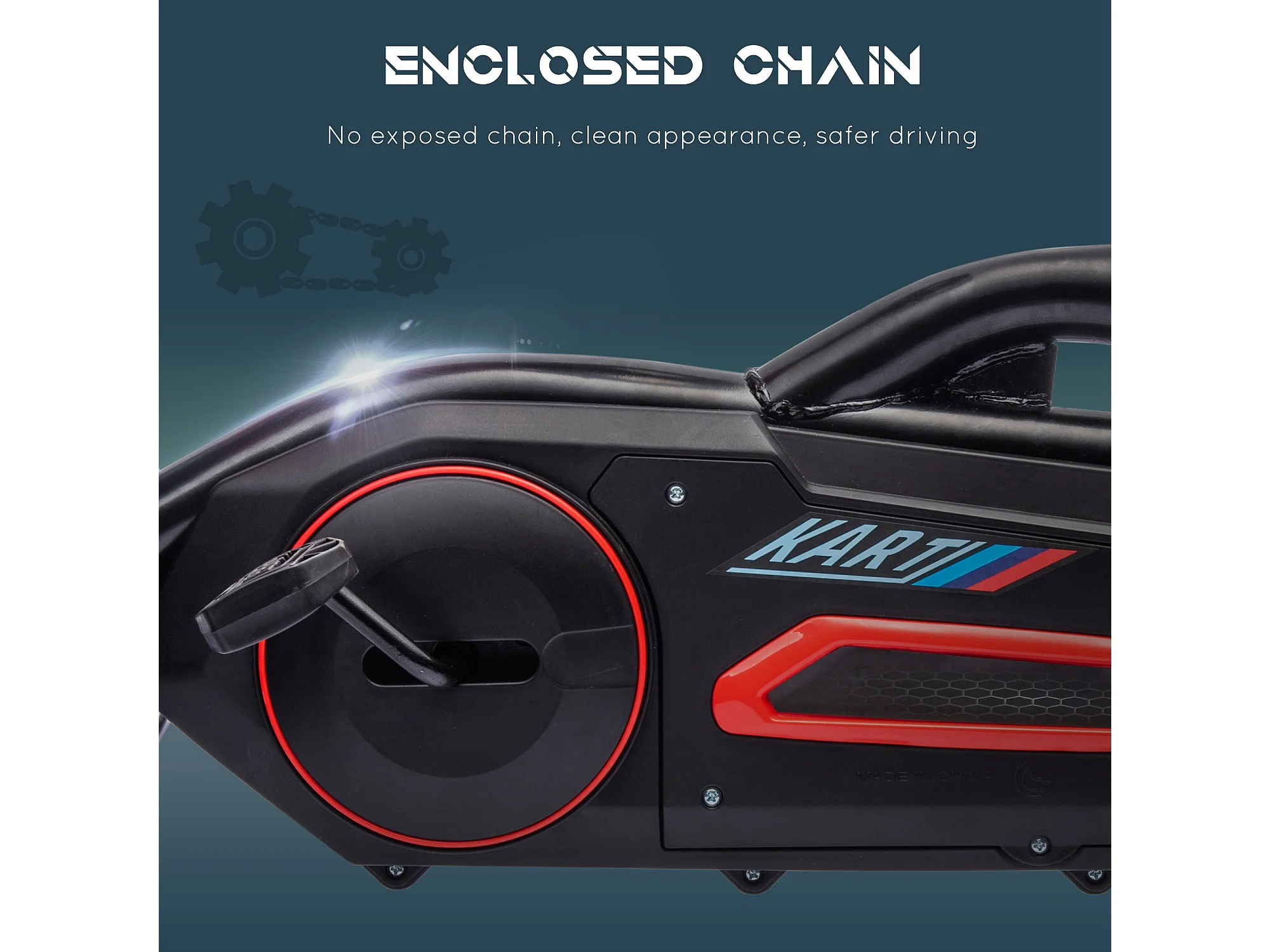 Go kart a pedali per bambini 5-12 anni in plastica e metallo rosso