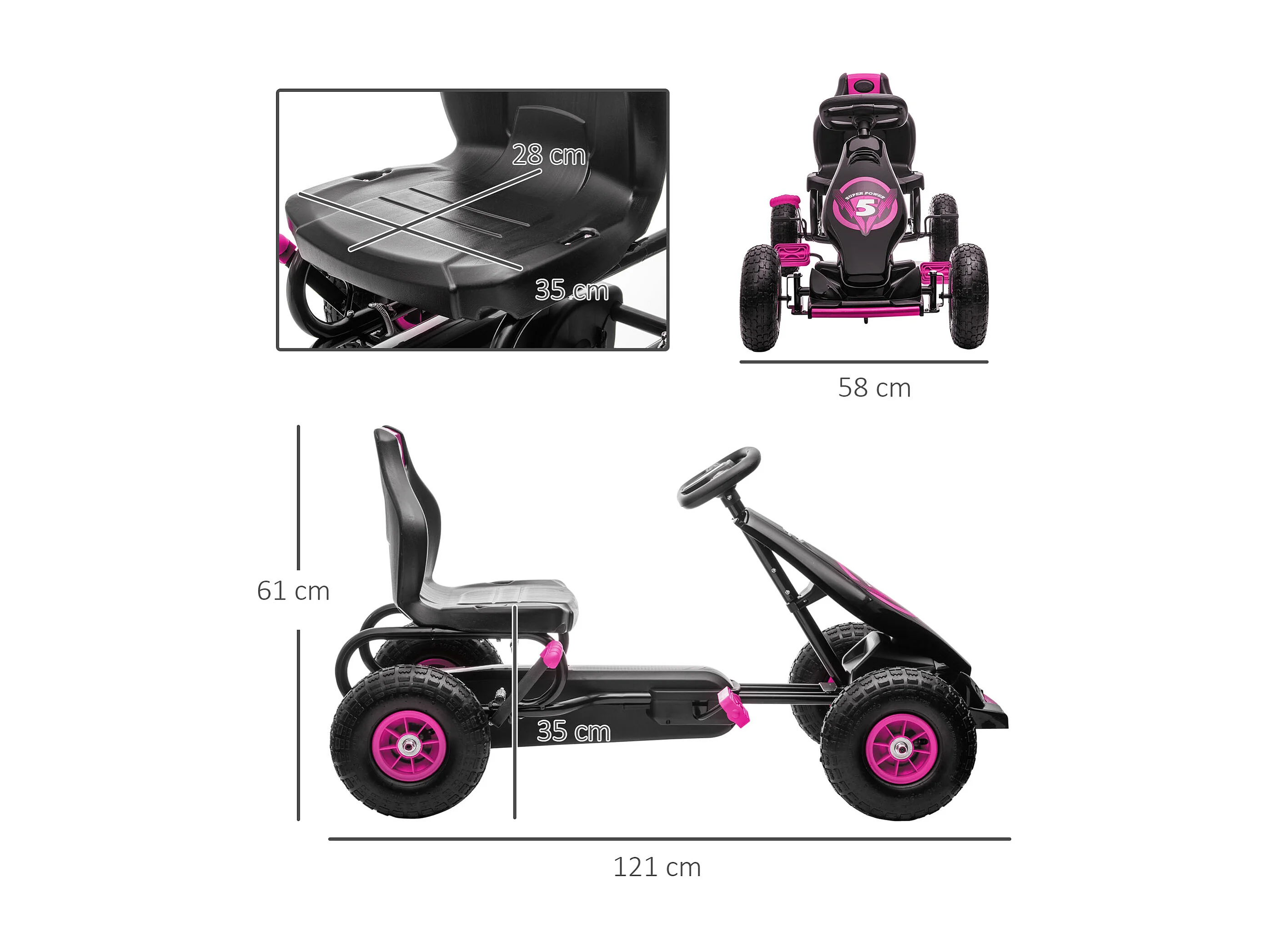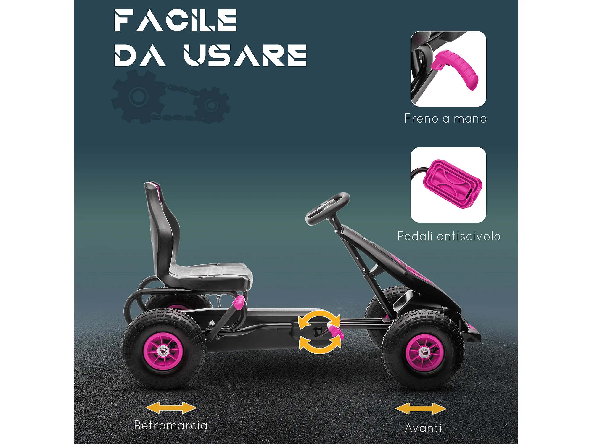 Go Kart a pedali per bambini con sedile regolabile rosa e nero