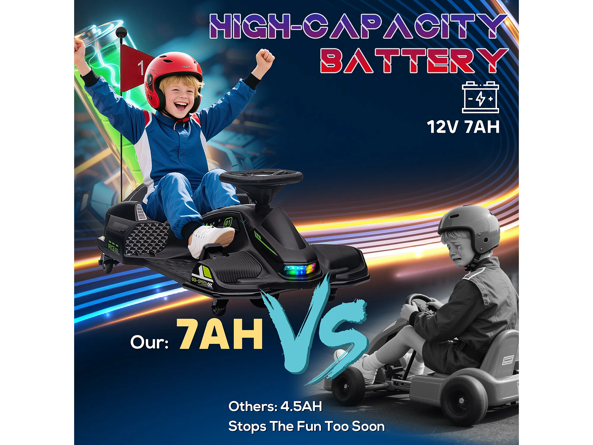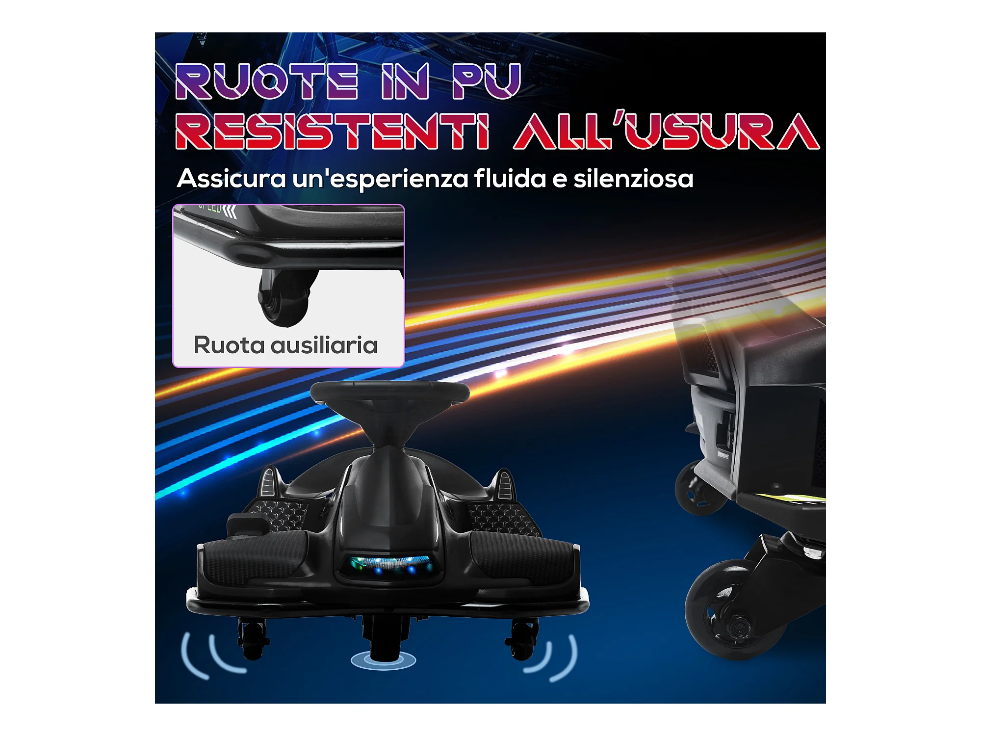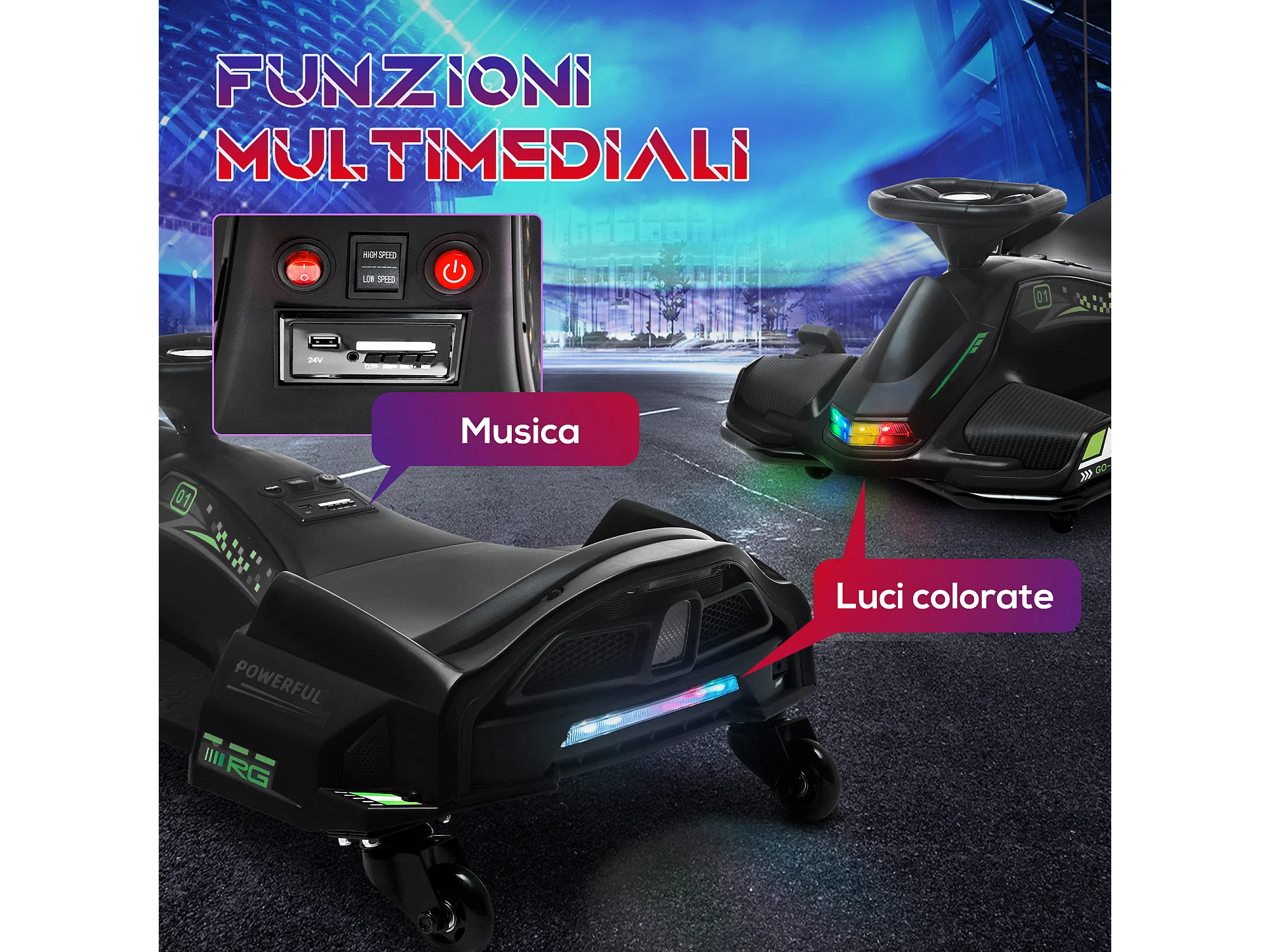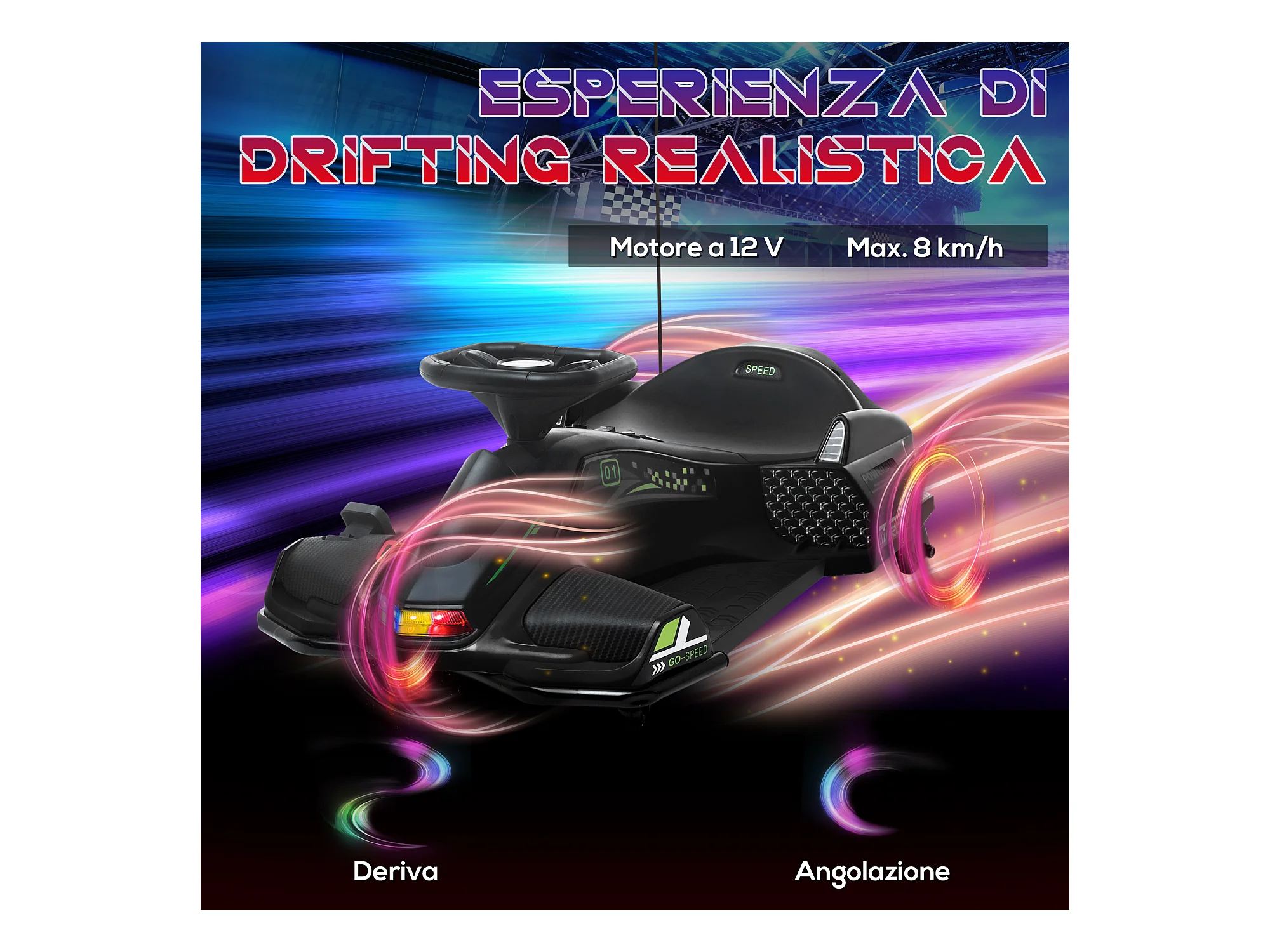 Go kart elettrico drift per bambini 8-12 anni velocità 3-8 km/h nero