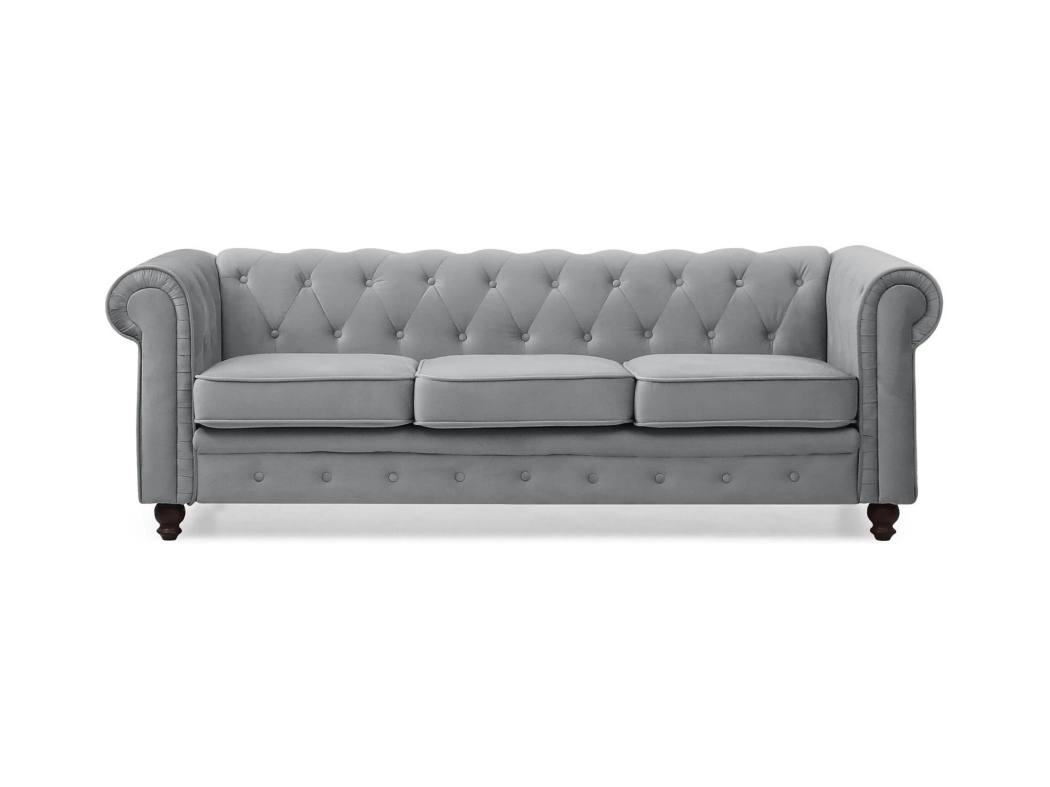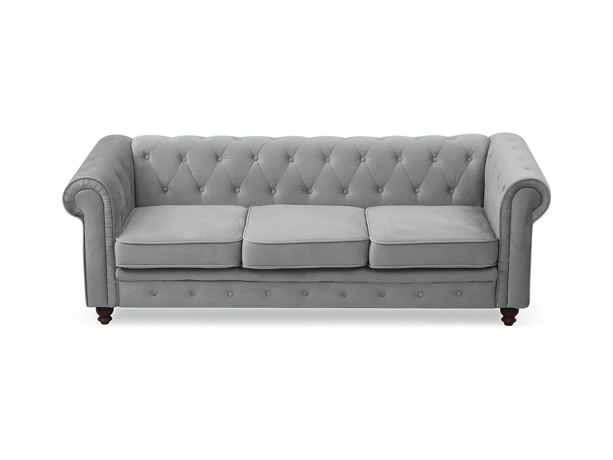 Grande divano a 3 posti Chesterfield in velluto argento