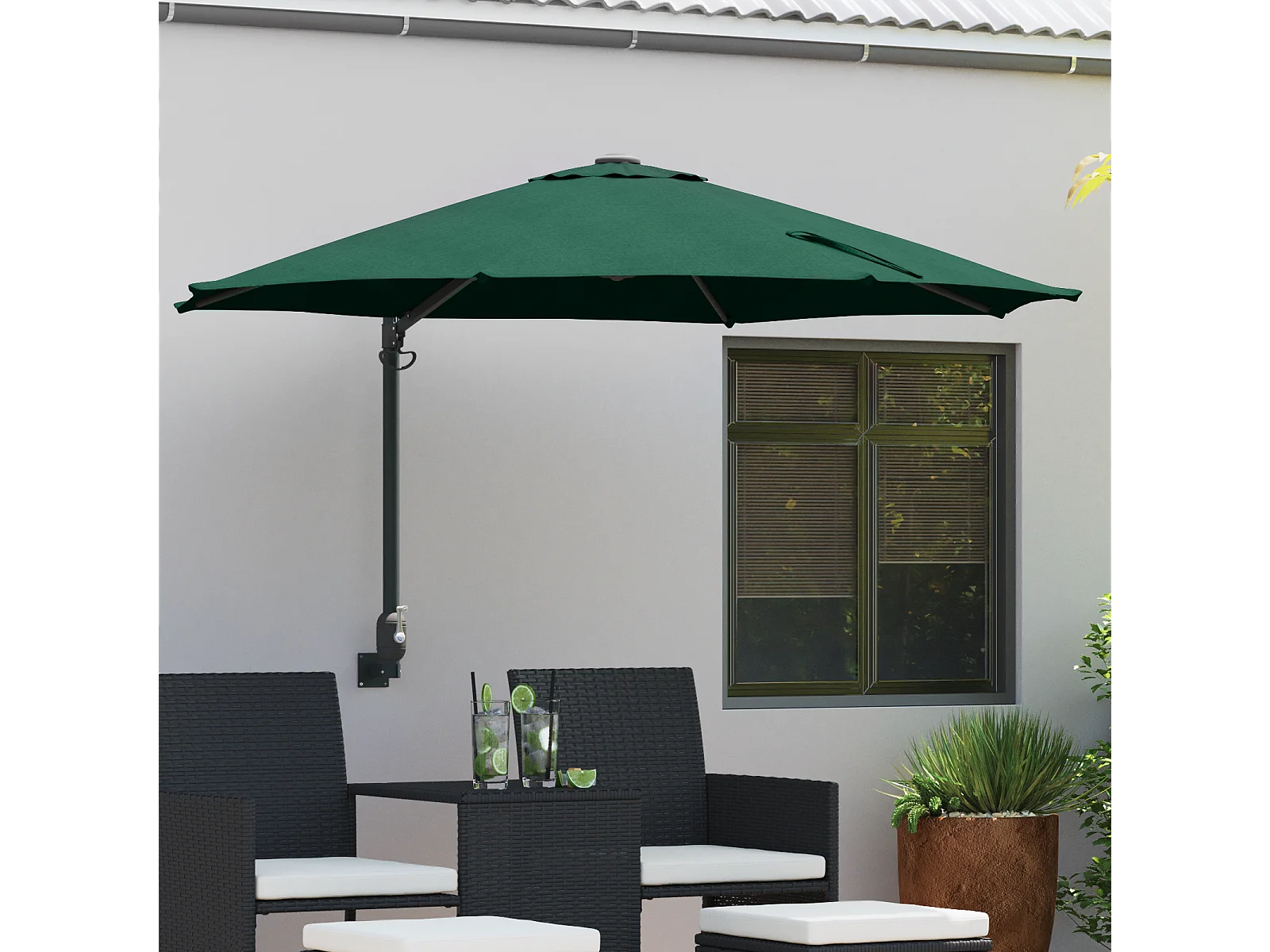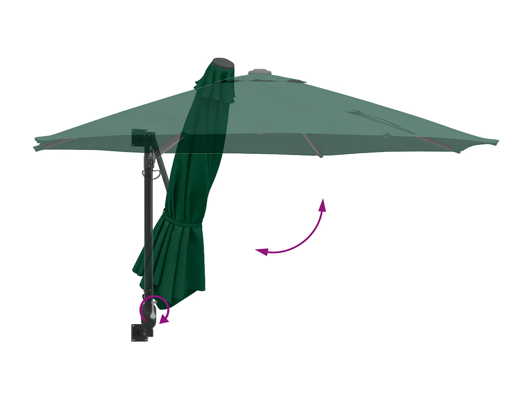 Grande ombrellone da giardino verde in metallo, poliestere, grande inclinazione