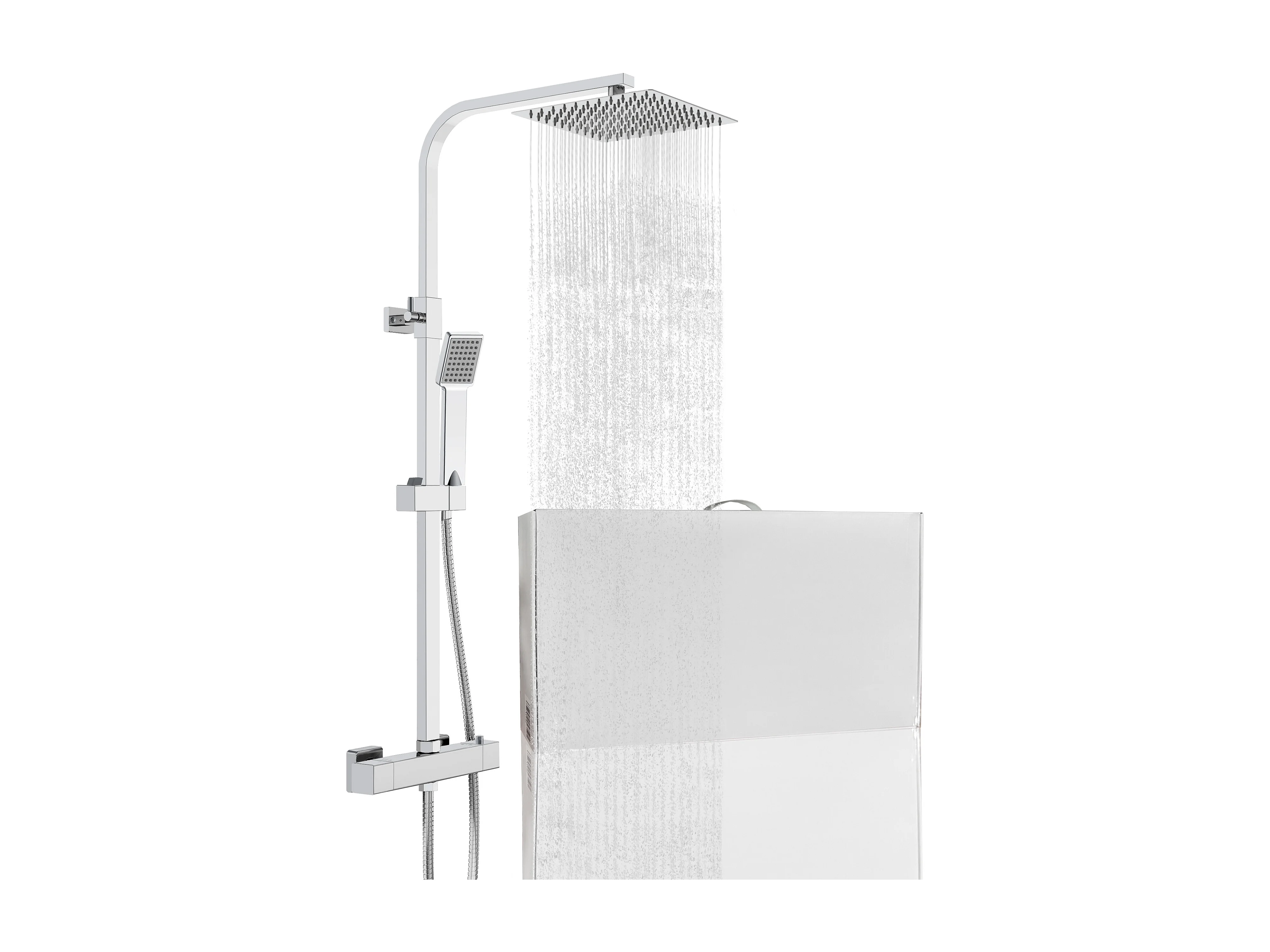Grande soffione doccia inox 25x25cm, miscelatore termostatico doccia rettangolo 280x40mm, cromo