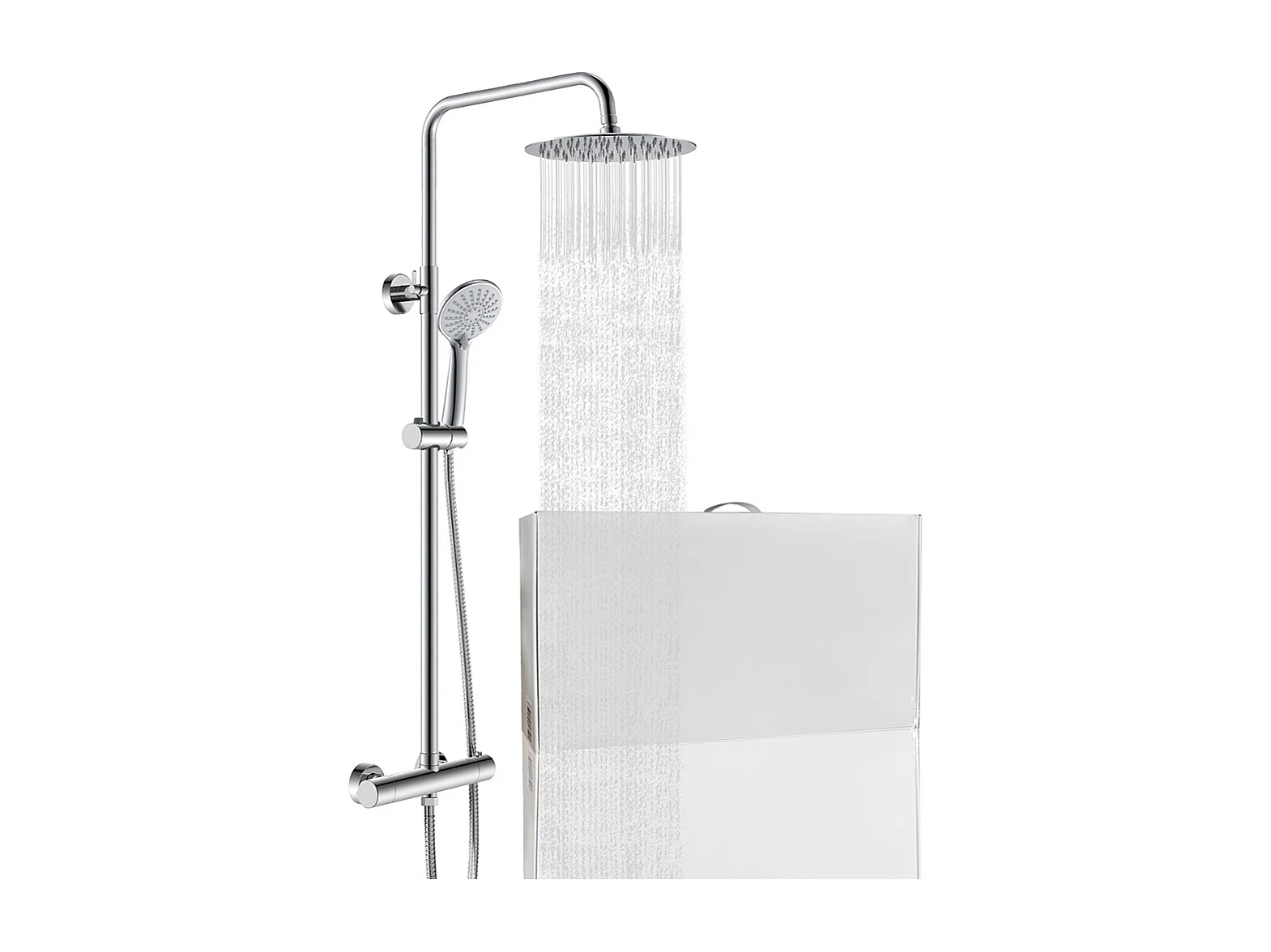 Grande soffione doccia inox 25x25cm, miscelatore termostatico doccia rotondo 280x40mm, cromo