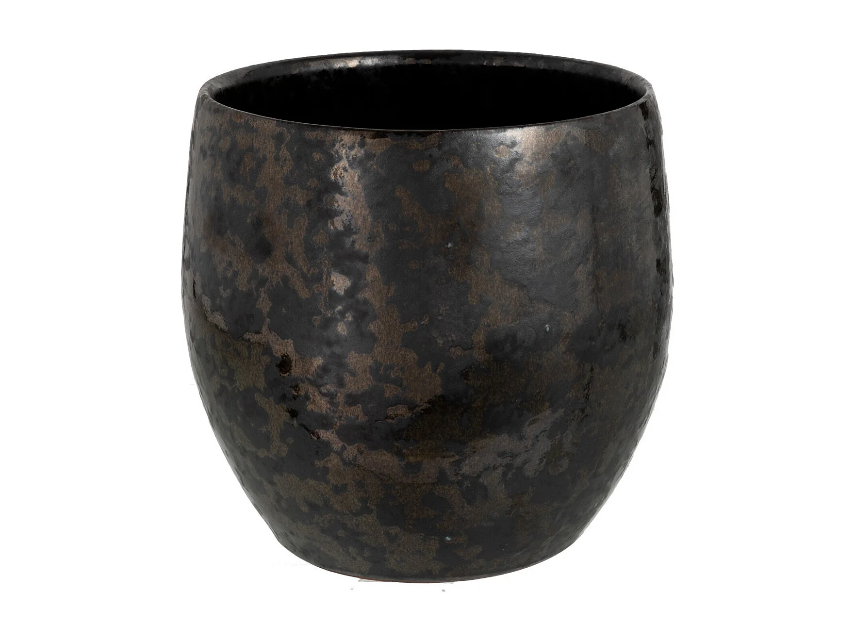 Portavasi irregolare in ceramica nera grezza 16,5x14 cm