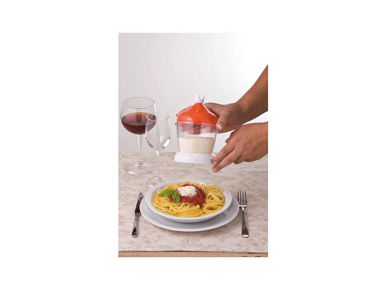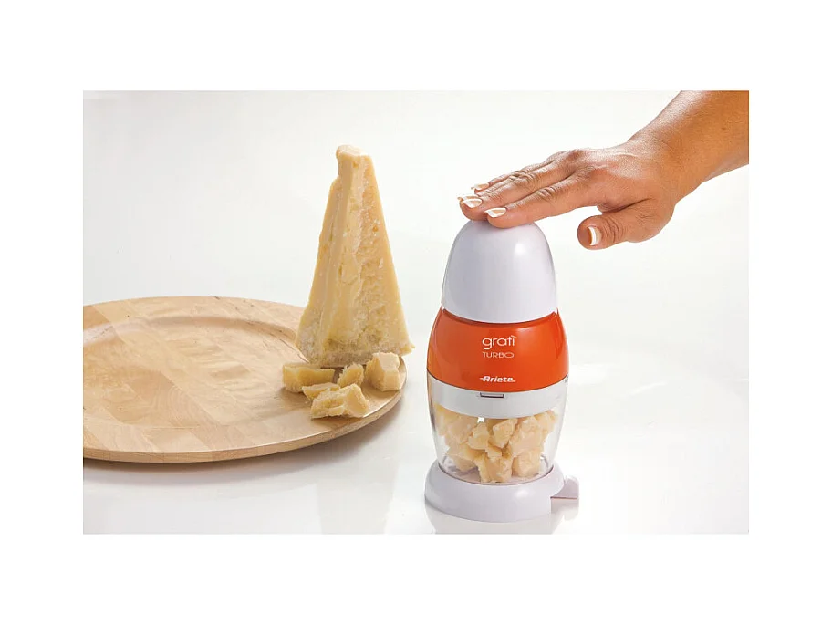 Grattugia elettrica con dosatore da tavola, lama acciaio inox, coperchio salvafreschezza - Arancione