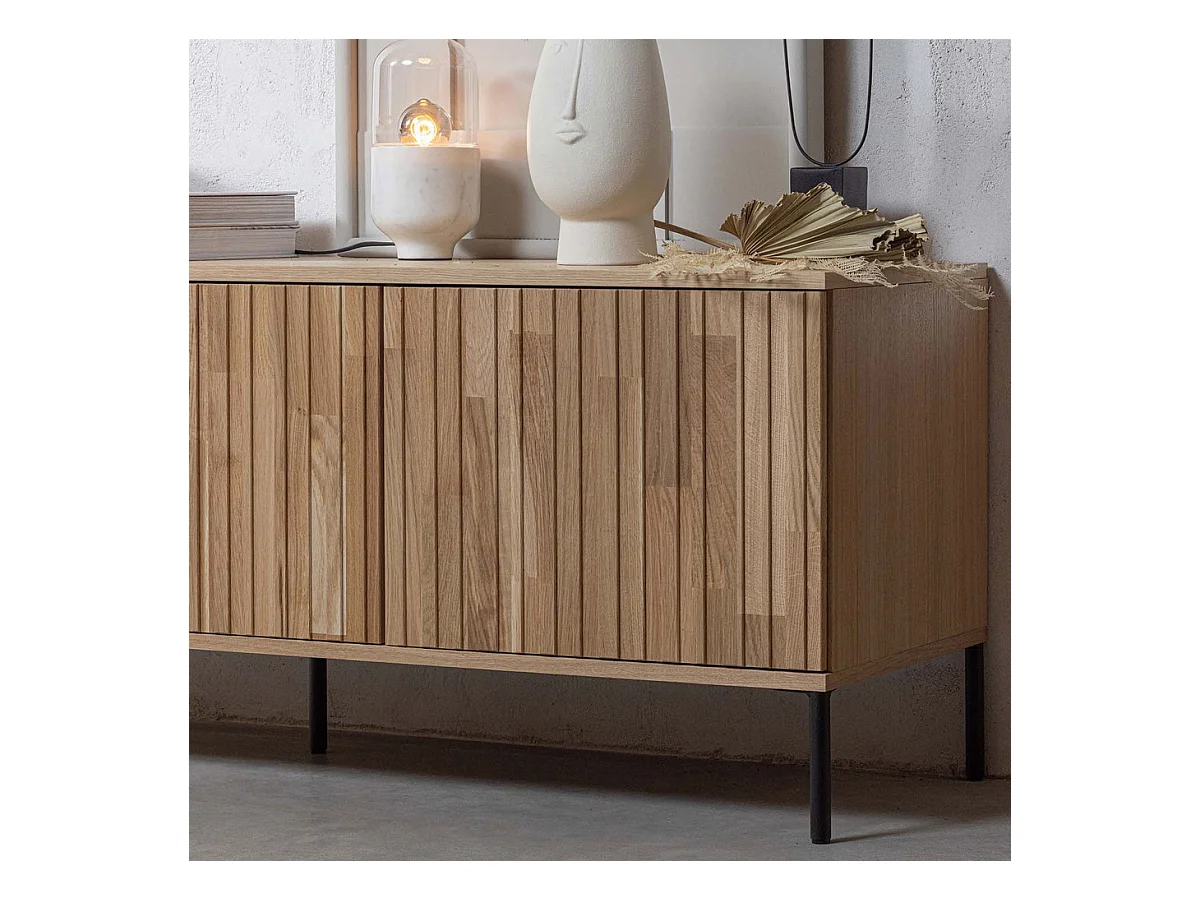 Cabinet TV 2 cassetti 1 porte e 3 nicchie - In MDF - Effetto del grano in legno e piedi in metallo - 180x38x50 cm