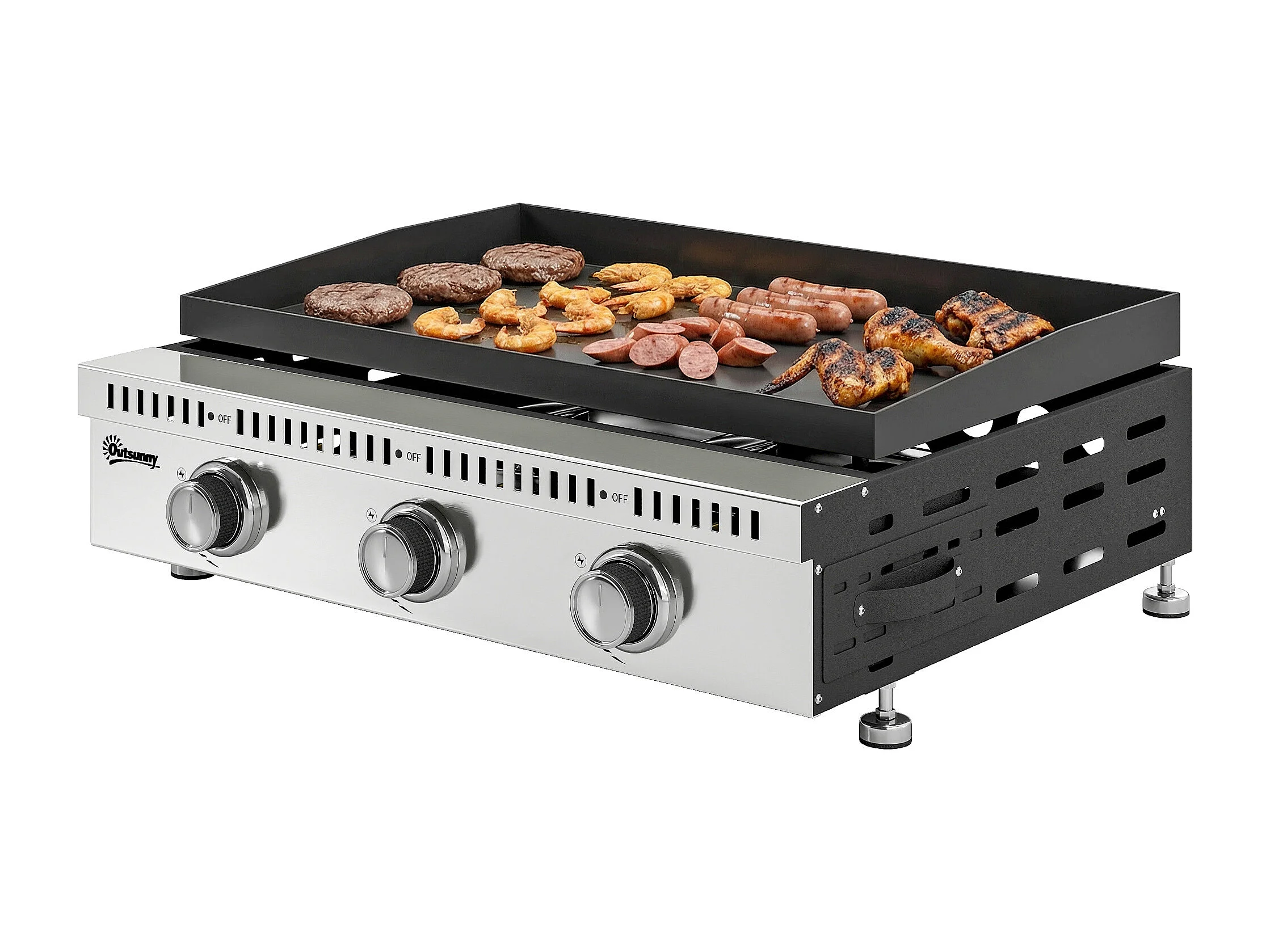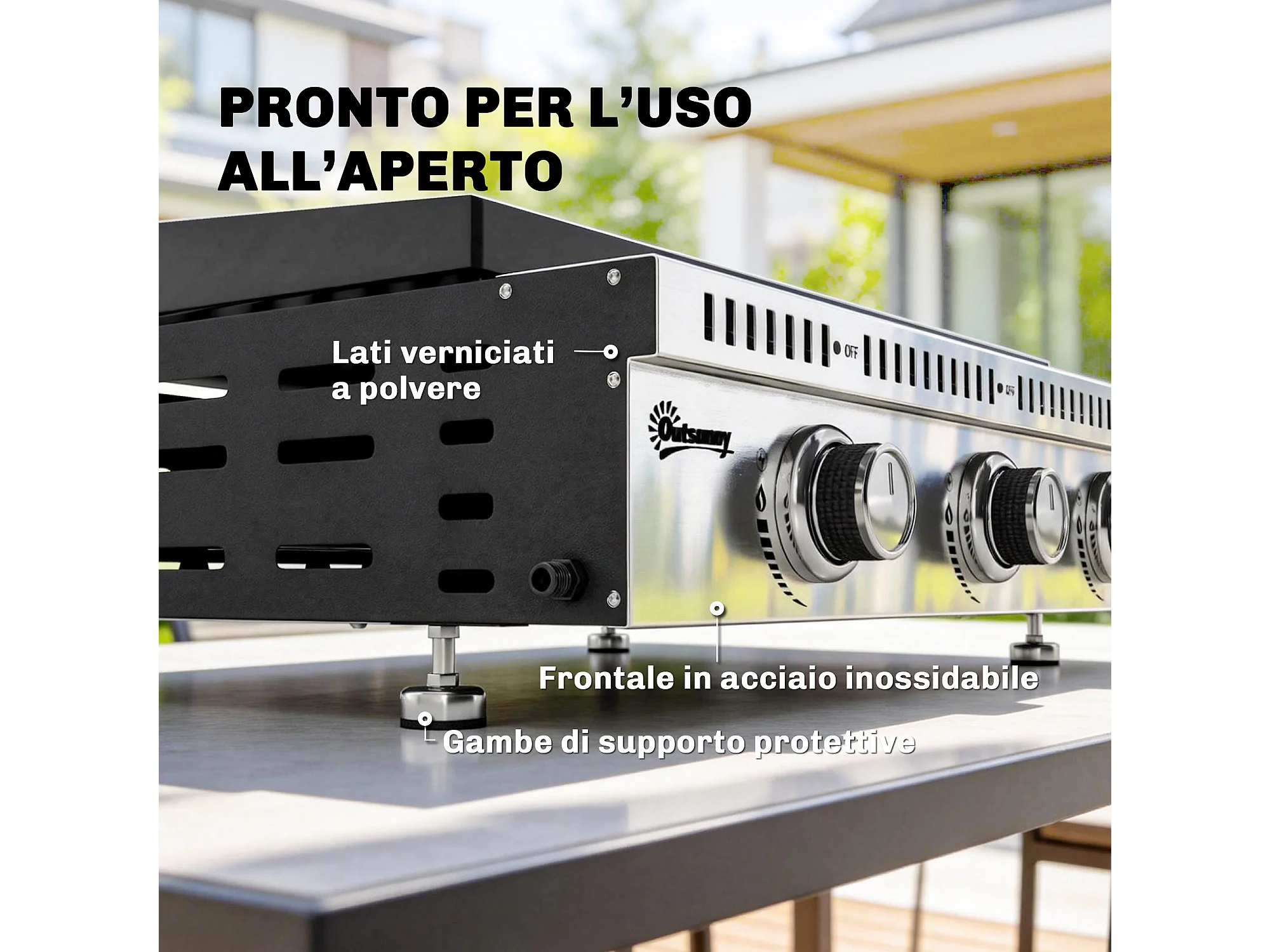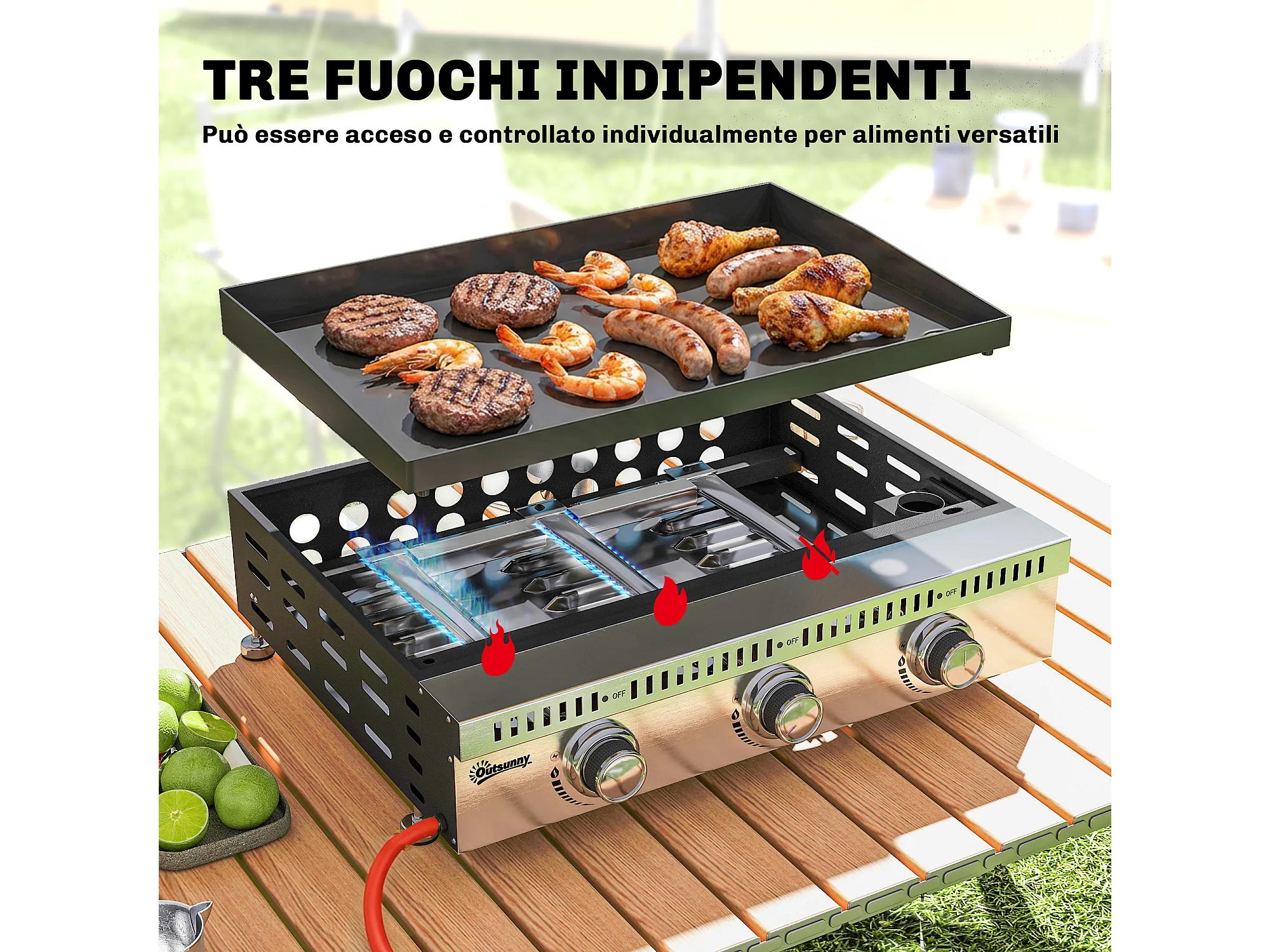 Griglia a gas portatile 3 bruciatori acciaio inox nero