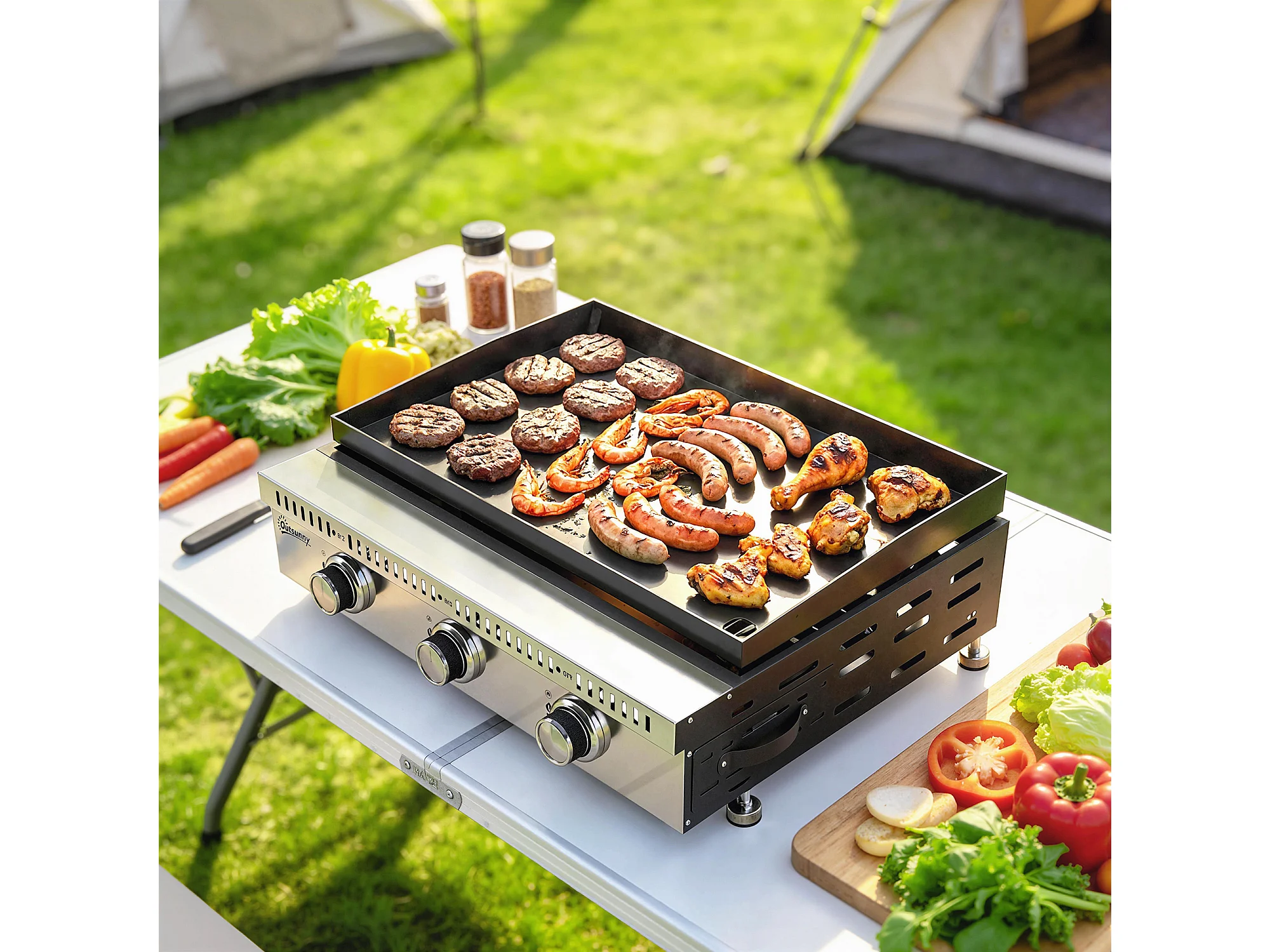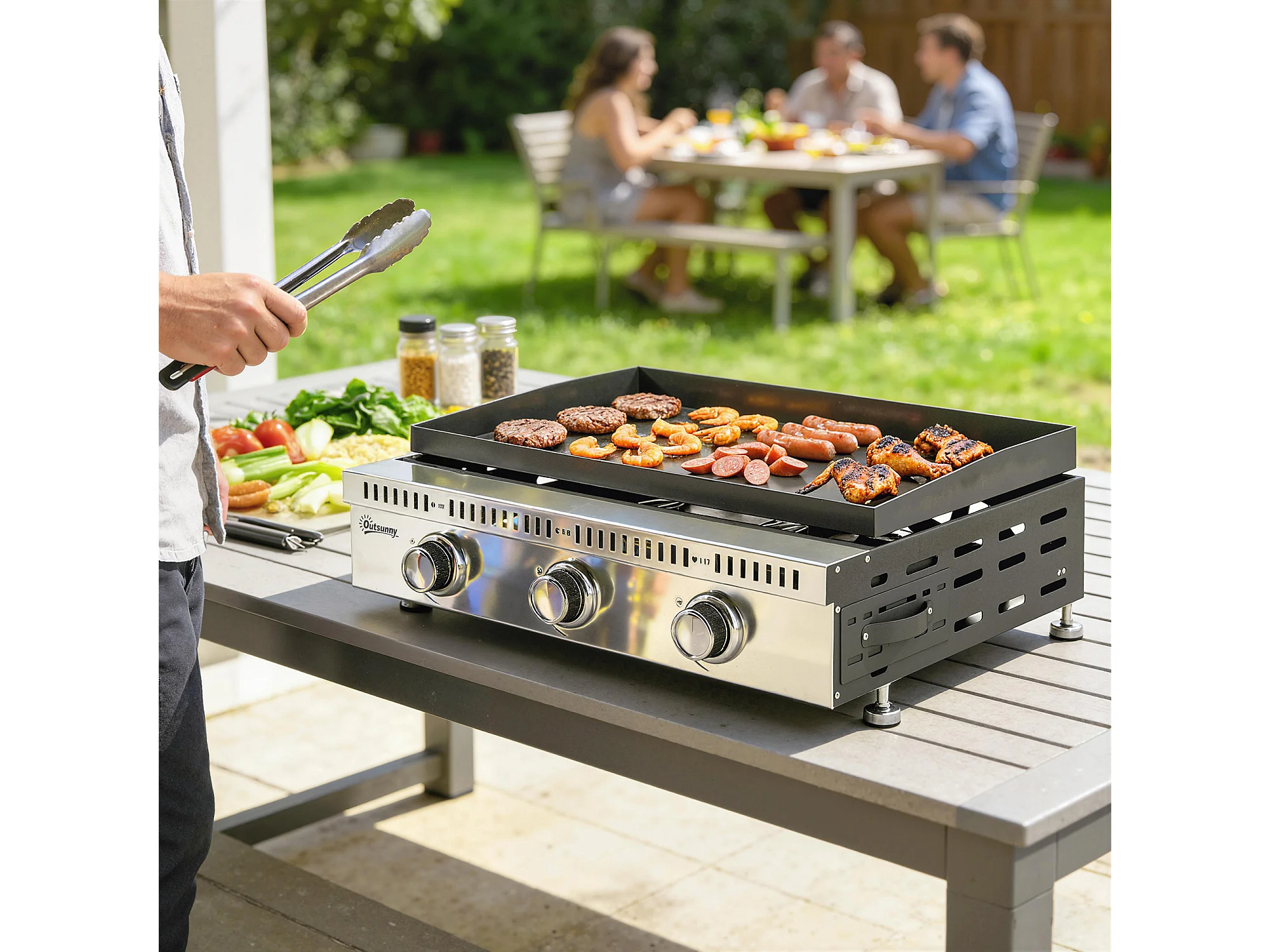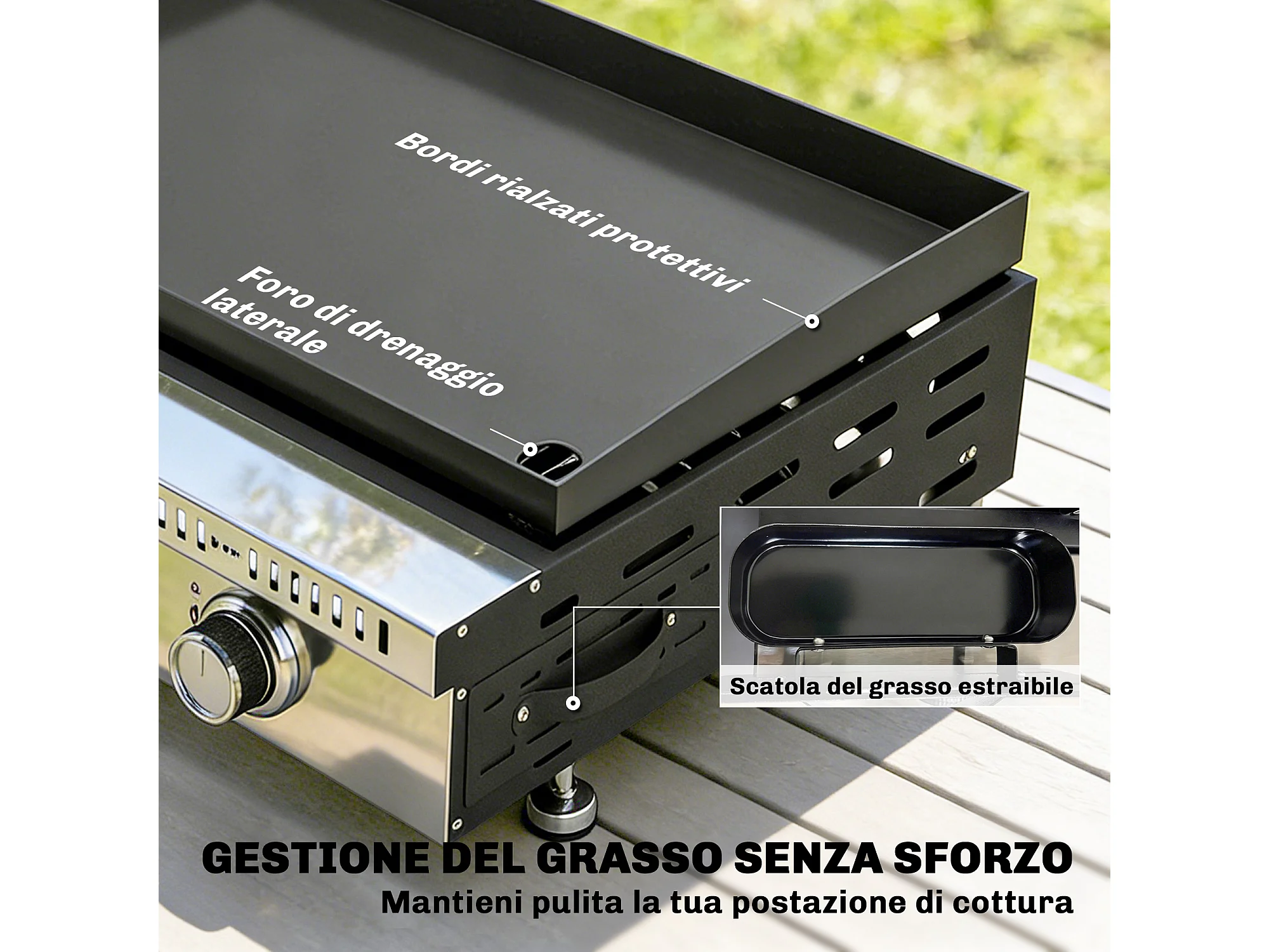 Griglia a gas portatile 3 bruciatori acciaio inox nero