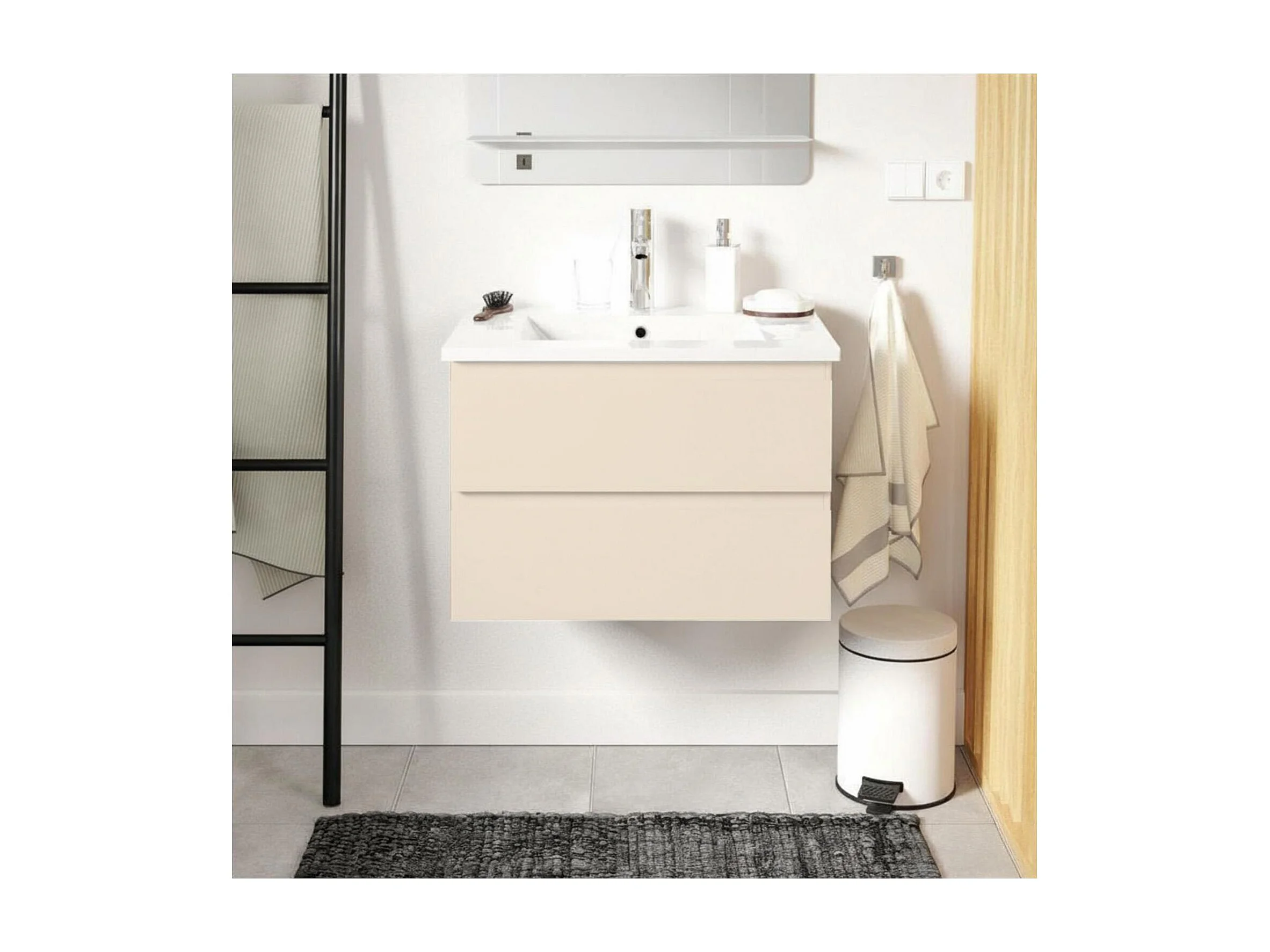 Gruppo lavabo singolo 60cm con piano in ceramica e rubinetto cromato SORRENTO
