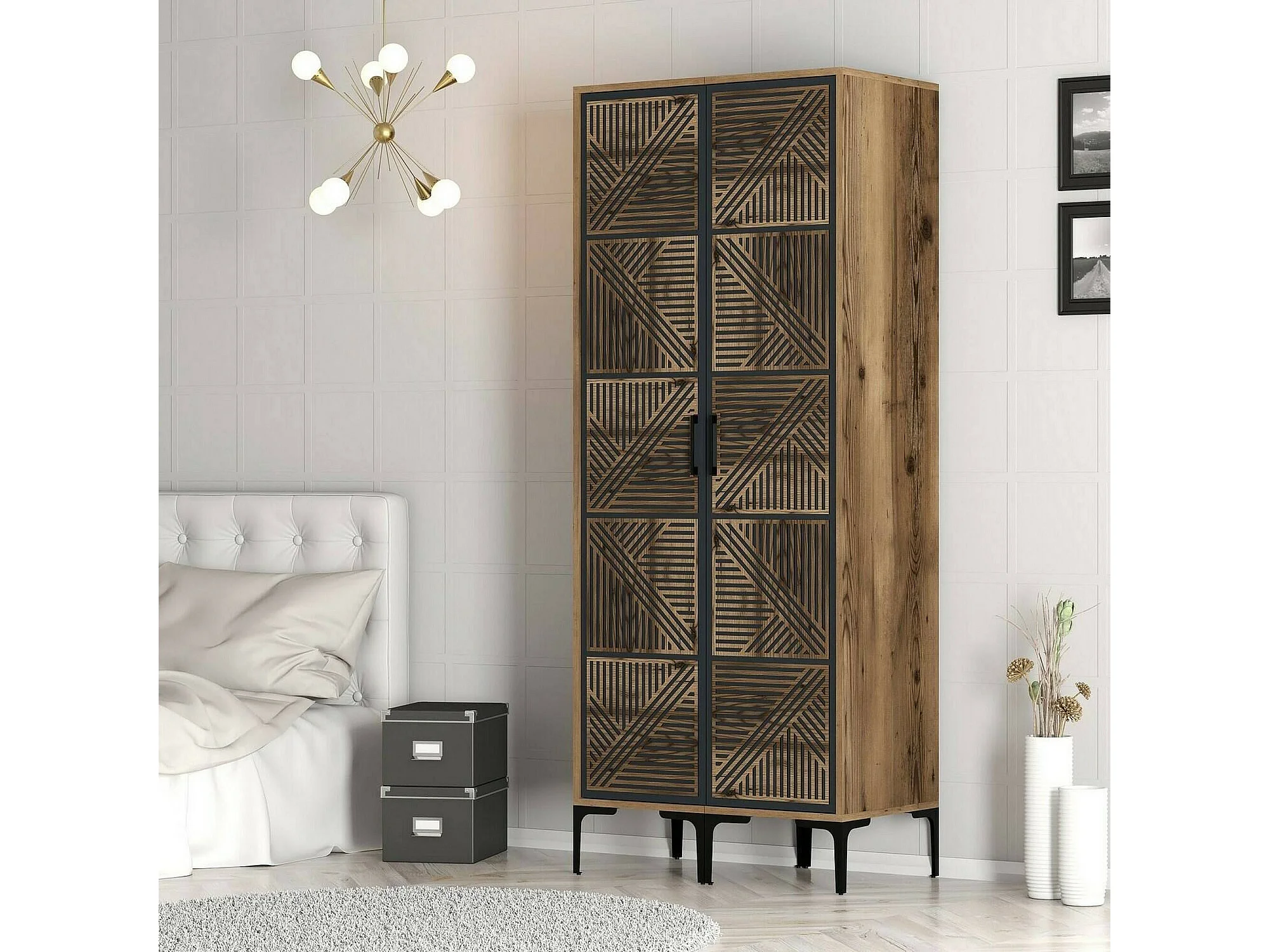 Guardaroba 2 Ante Acate, Appendiabiti, 47.5x201.4h cm Nero Antracite, Armadio Camera da Letto