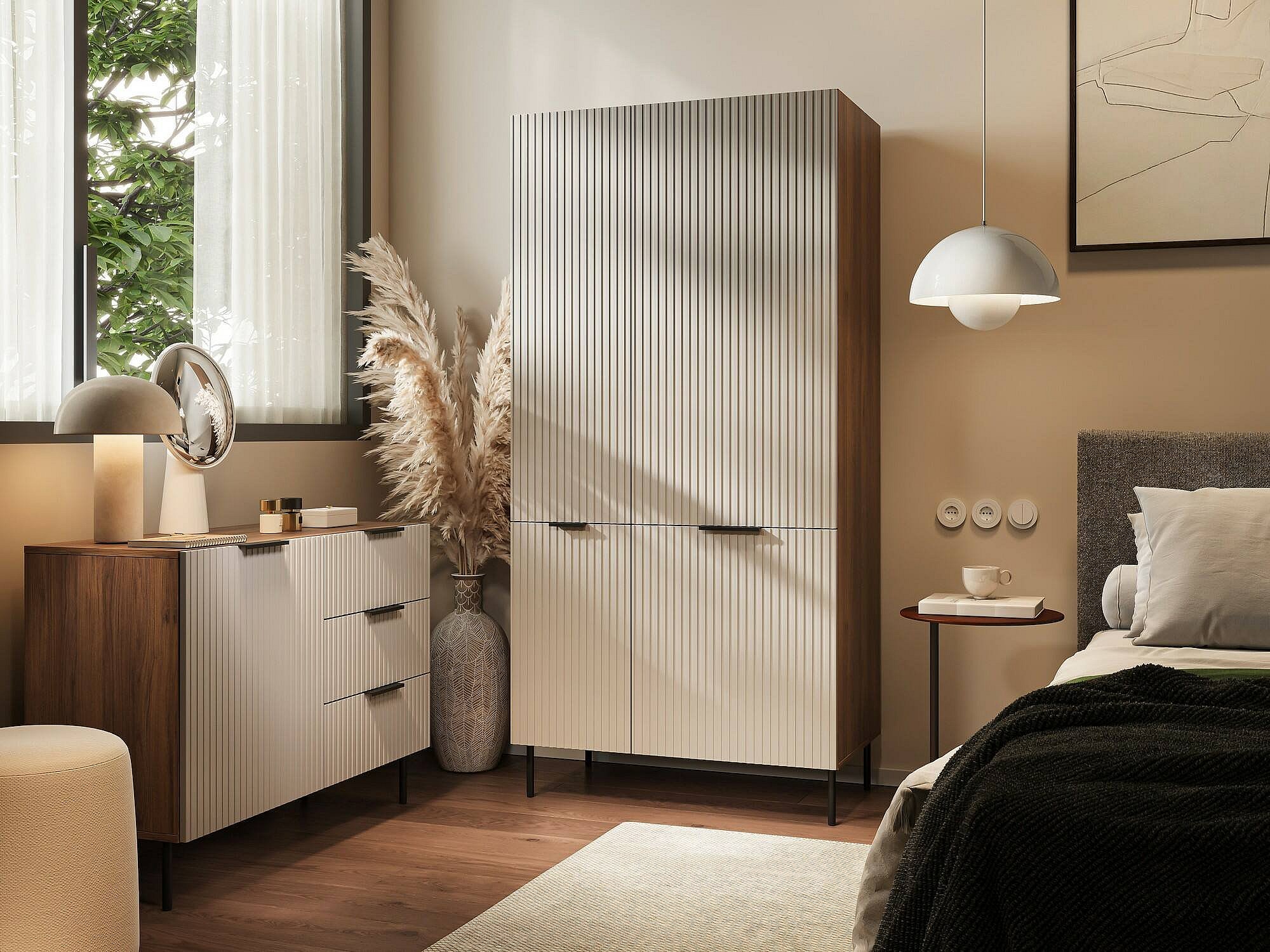Guardaroba 2 ante Caiazzo, Mobile camera da letto, Cabina armadio portabiti, Armadio appendiabiti, 90x56 h199 cm, Beige