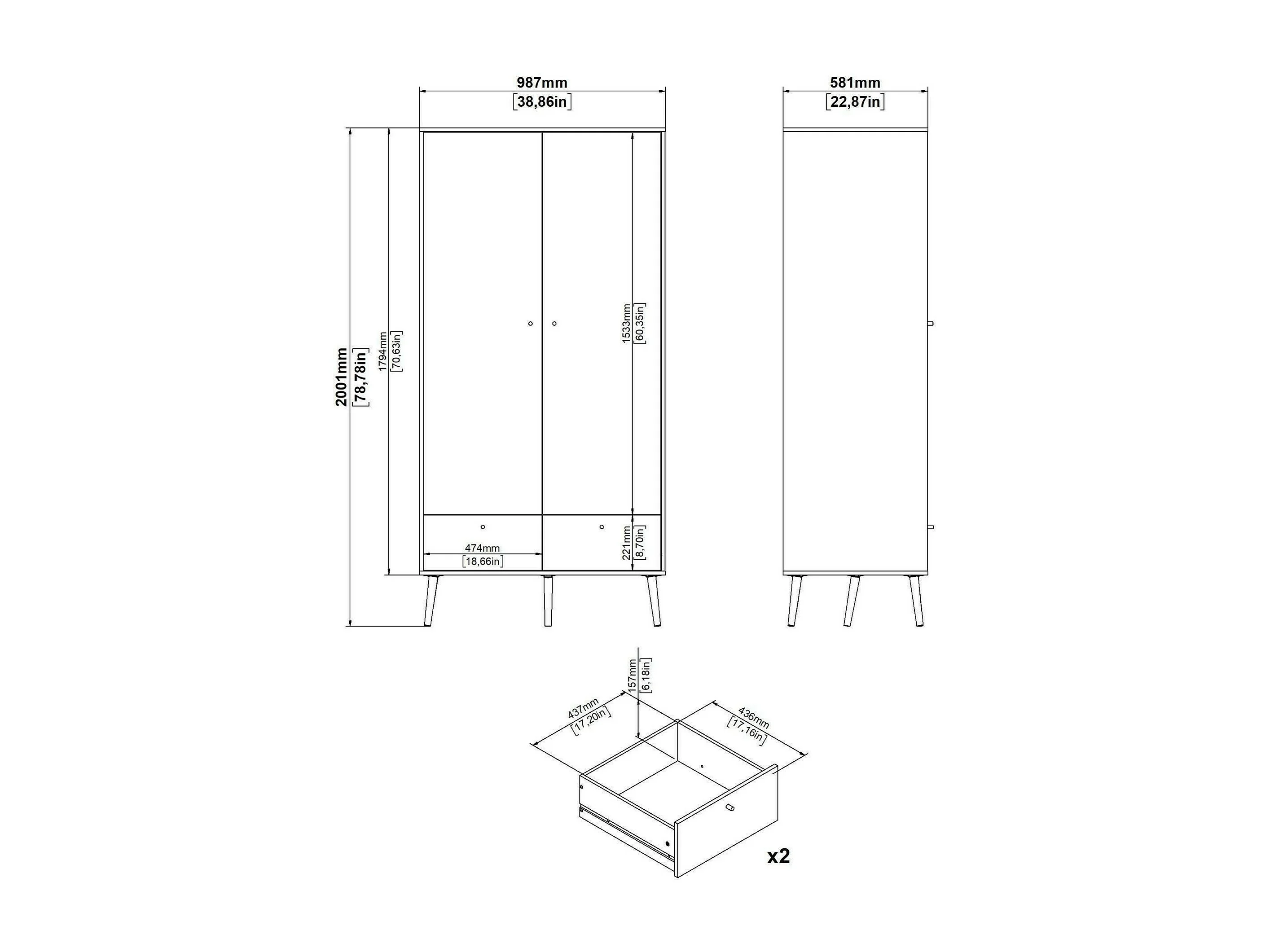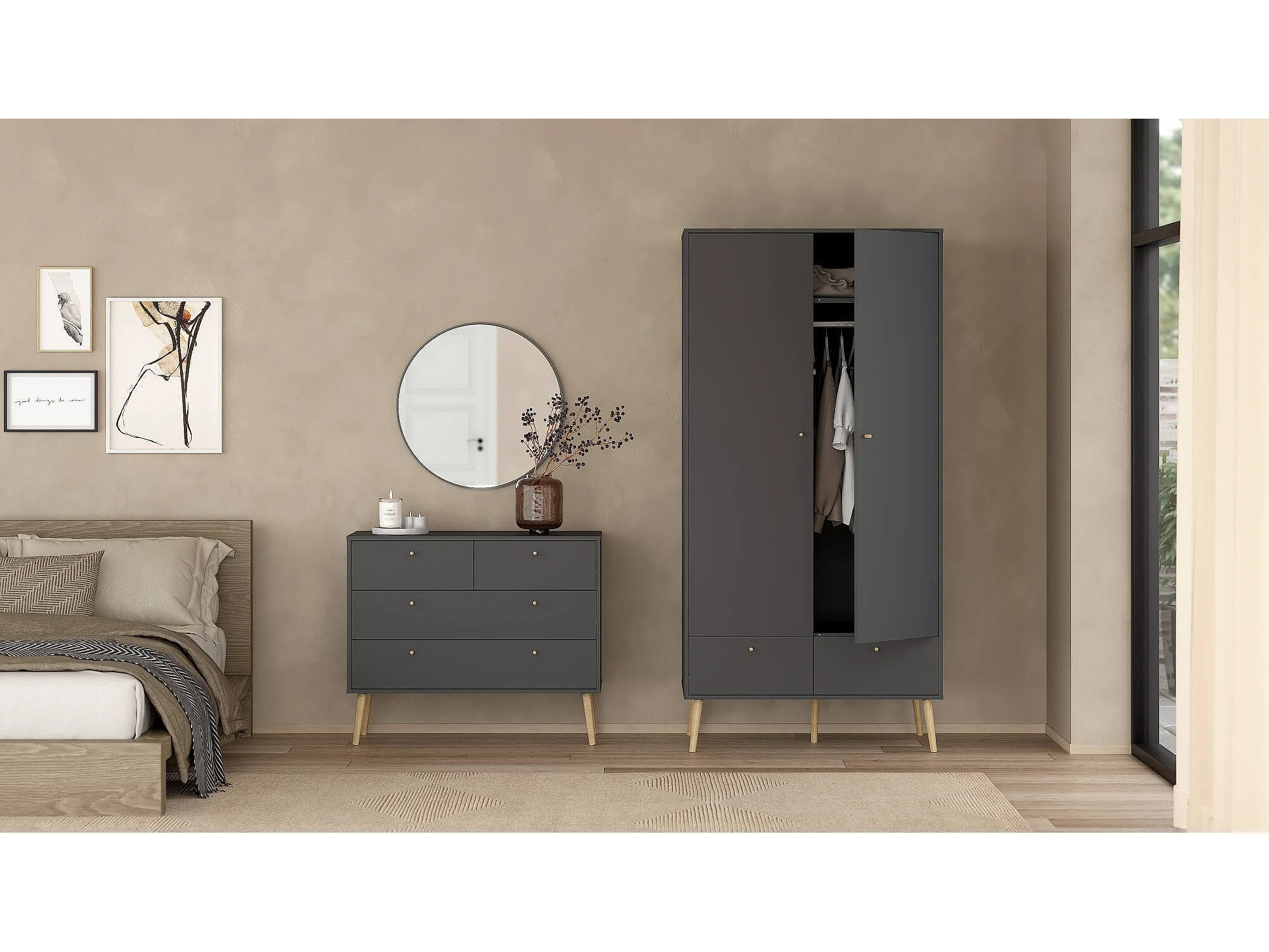Guardaroba 2 Ante Kahina, un Ripiano, 58.1x200.1h cm Grigio, Armadio Camera da Letto