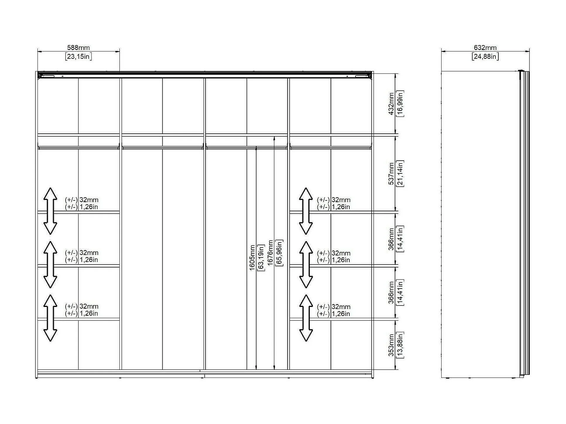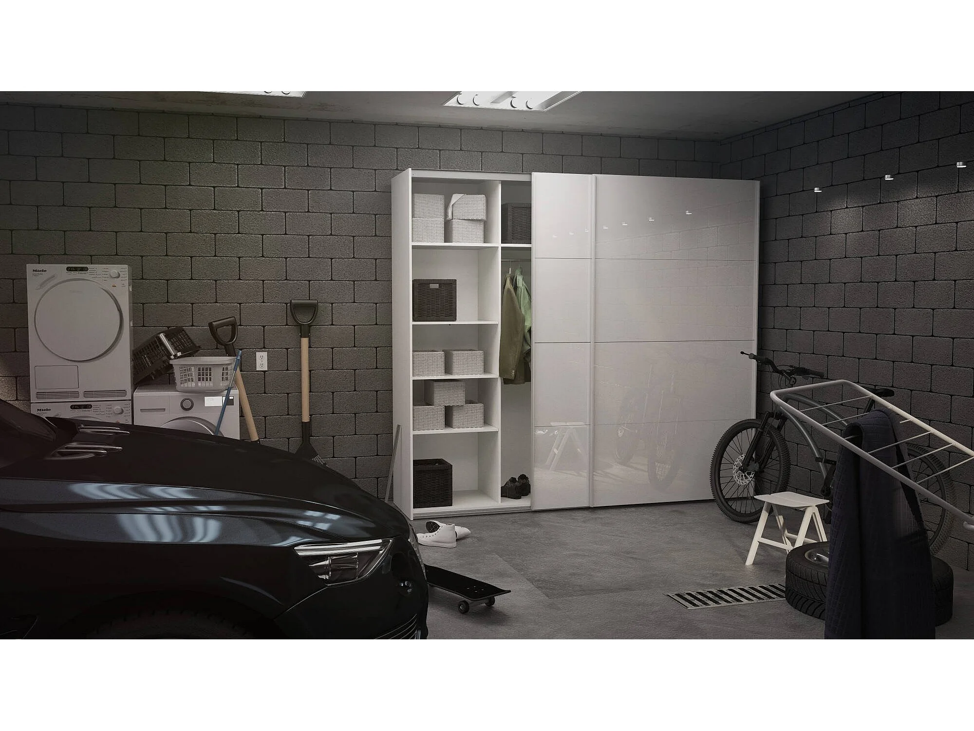 Guardaroba 2 Ante Kauri, Appendiabiti, 60.5x220.4h cm Bianco Lucido, Armadio Camera da Letto