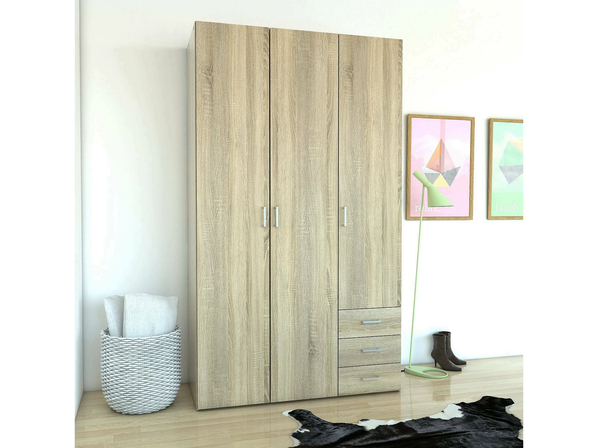 Guardaroba 3 Ante Aquilone, 3 Cassetti, 49.5x115.8 cm Marrone Quercia, Armadio Camera da Letto