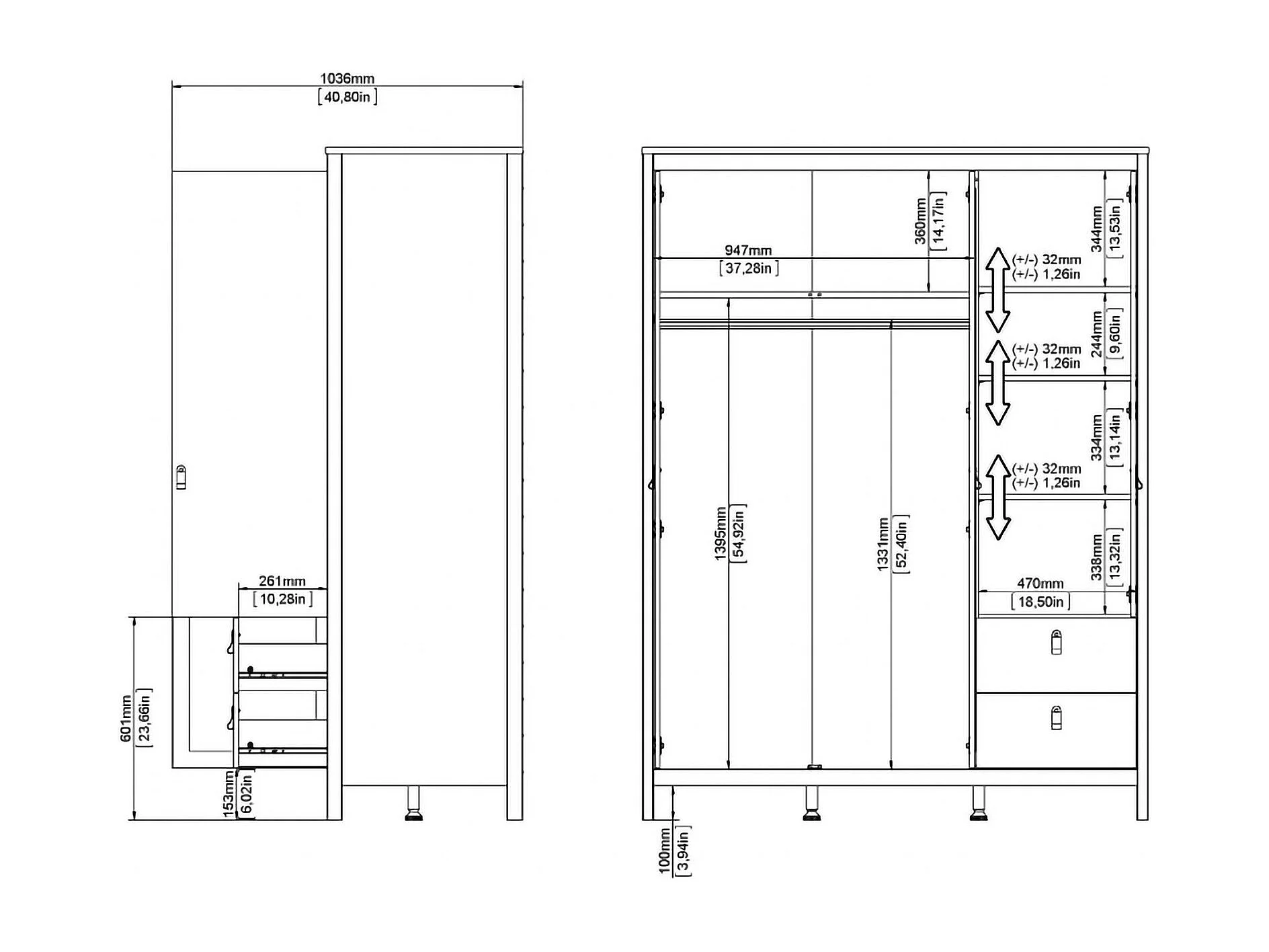 Guardaroba 3 Ante Rufina, 4 Ripiani, 58.4x150 cm Bianco, Armadio Camera da Letto