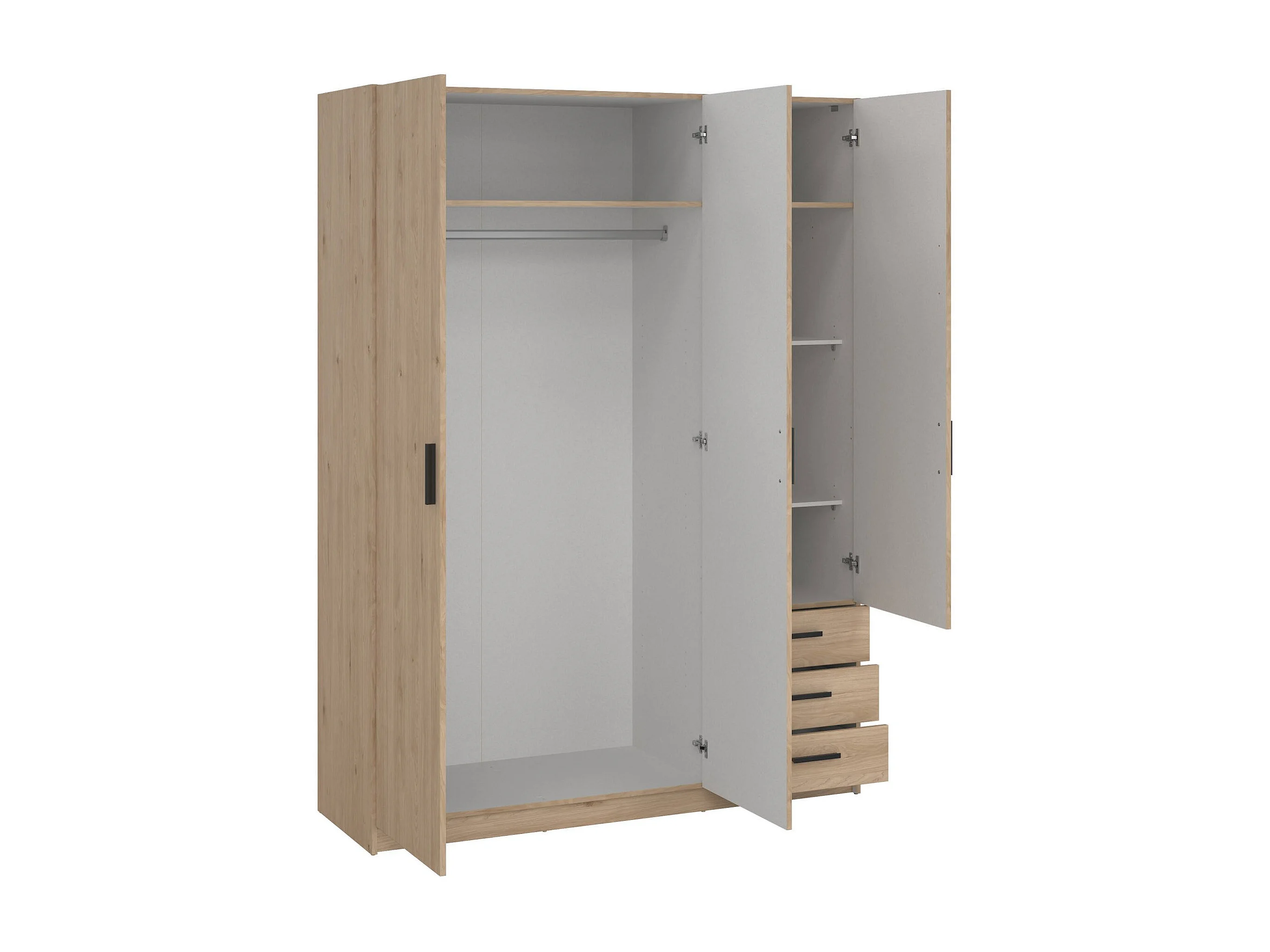 Guardaroba 3 Ante Simeon, 4 Ripiani, 49.8x147 cm Marrone Rovere, Armadio Camera da Letto