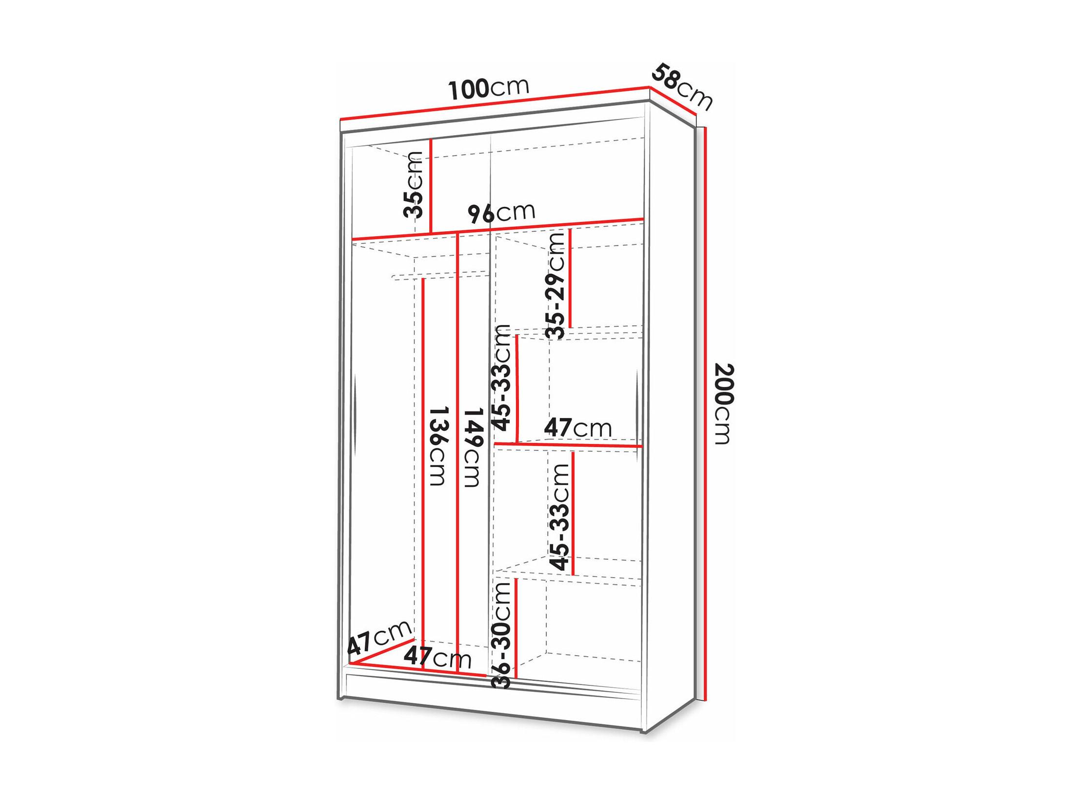 Armadio 2 ante scorrevoli di cui 1 specchio - L135 cm