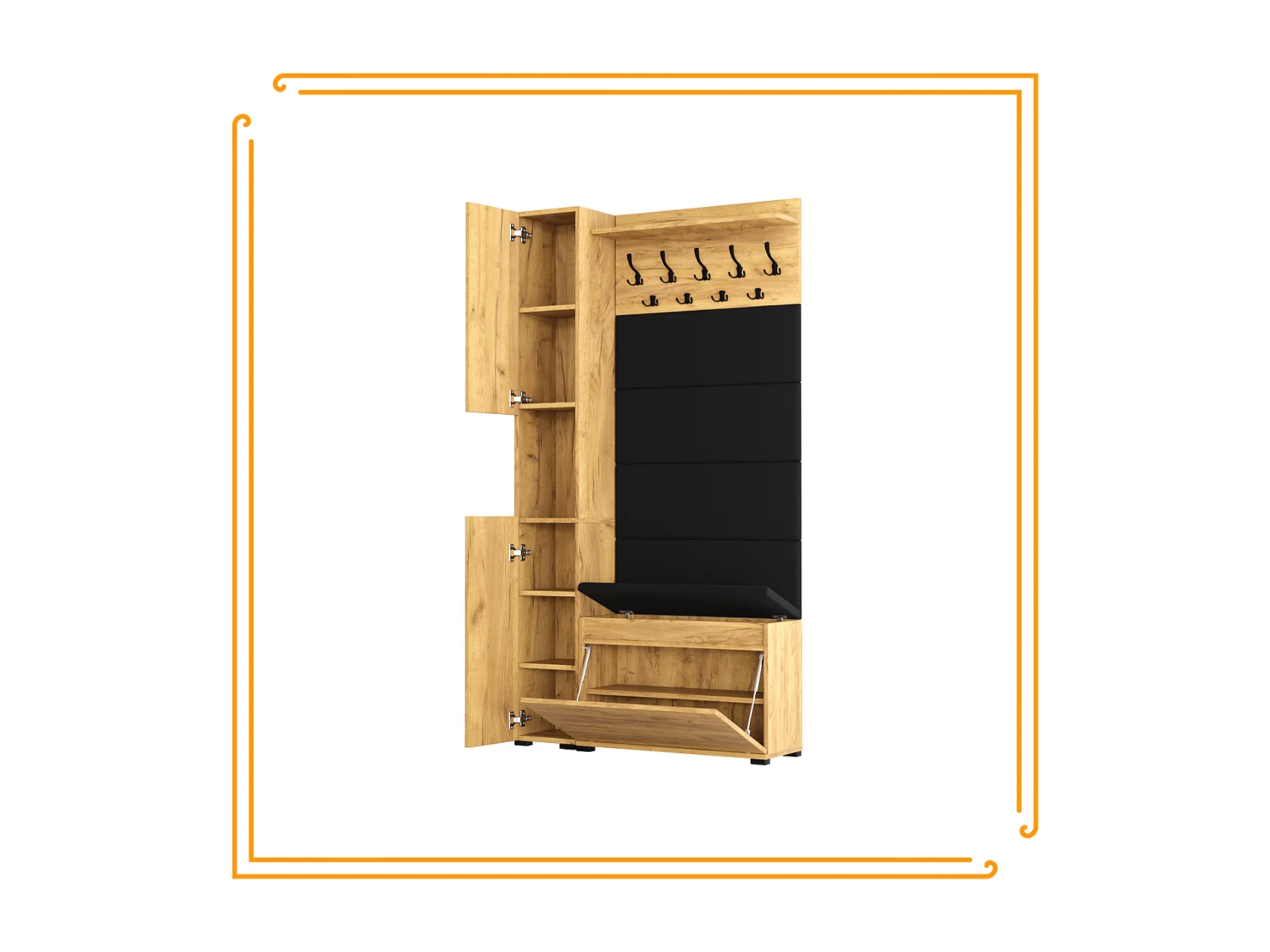 Guardaroba da Ingresso con Seduta, Appendiabiti, Pannello Imbottito, Colonna