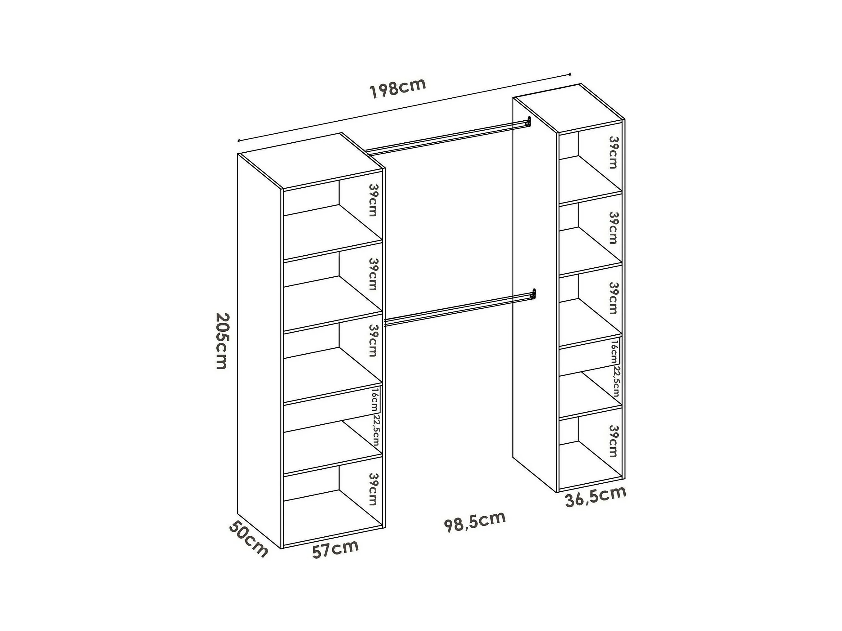 Dmora - Guardaroba grande Amalio, 200x50h205 cm, Bianco