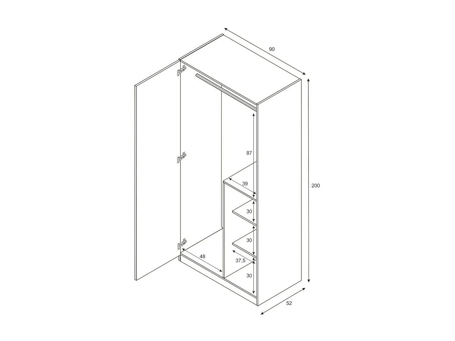 Guardaroba 3 Ante Aronia, 3 Ripiani, 52x90 cm Grigio, Armadio Camera da Letto