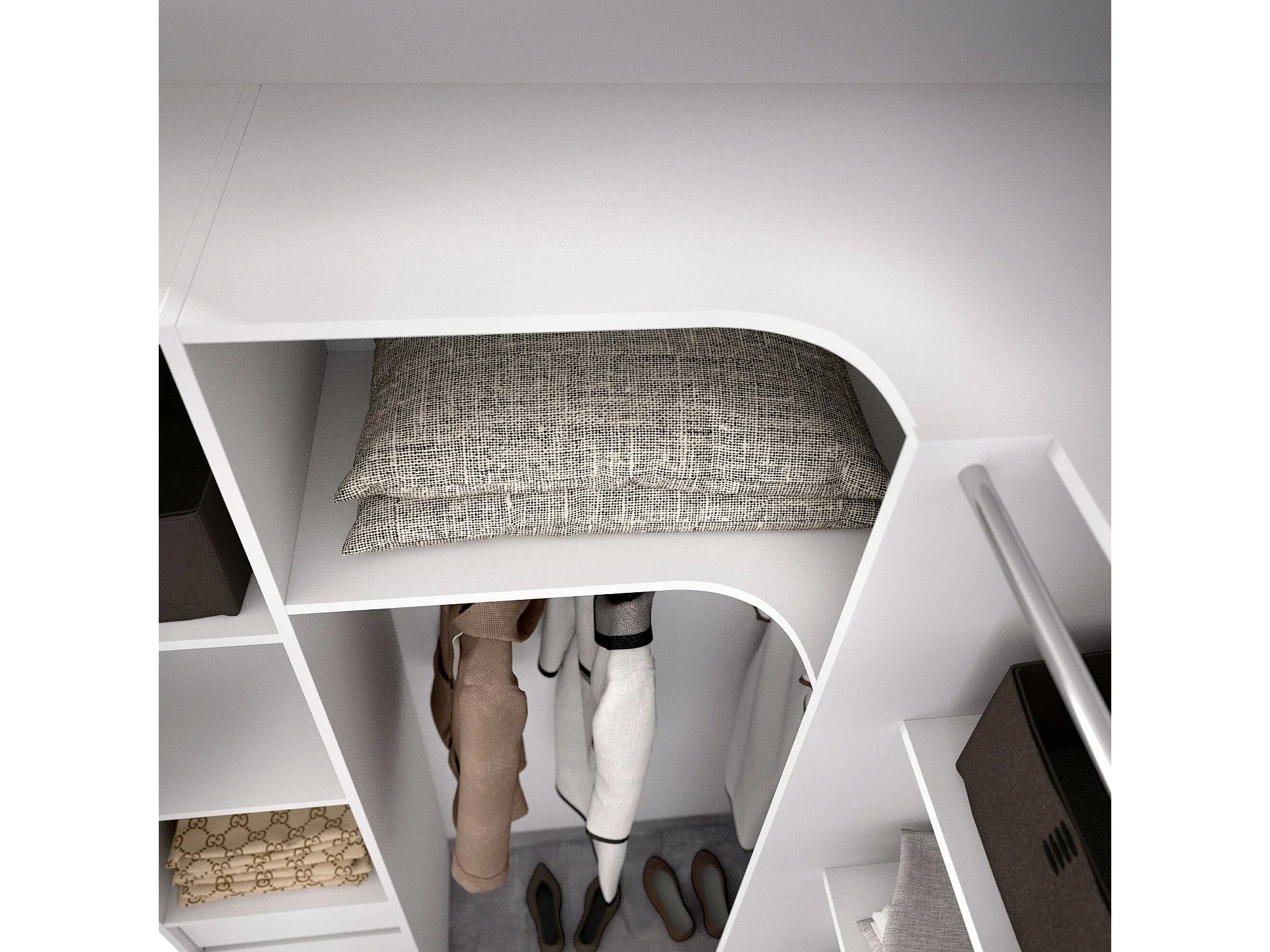 Guardaroba Grande Dindo, 13 Ripiani, 141x205h cm Bianco, Armadio Camera da Letto