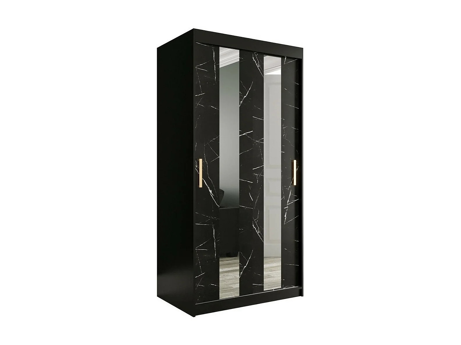 Armadio Hartford 240, Nero opaco|Marmo nero, 200x100x62cm, Porte armadi: Scorrevoli