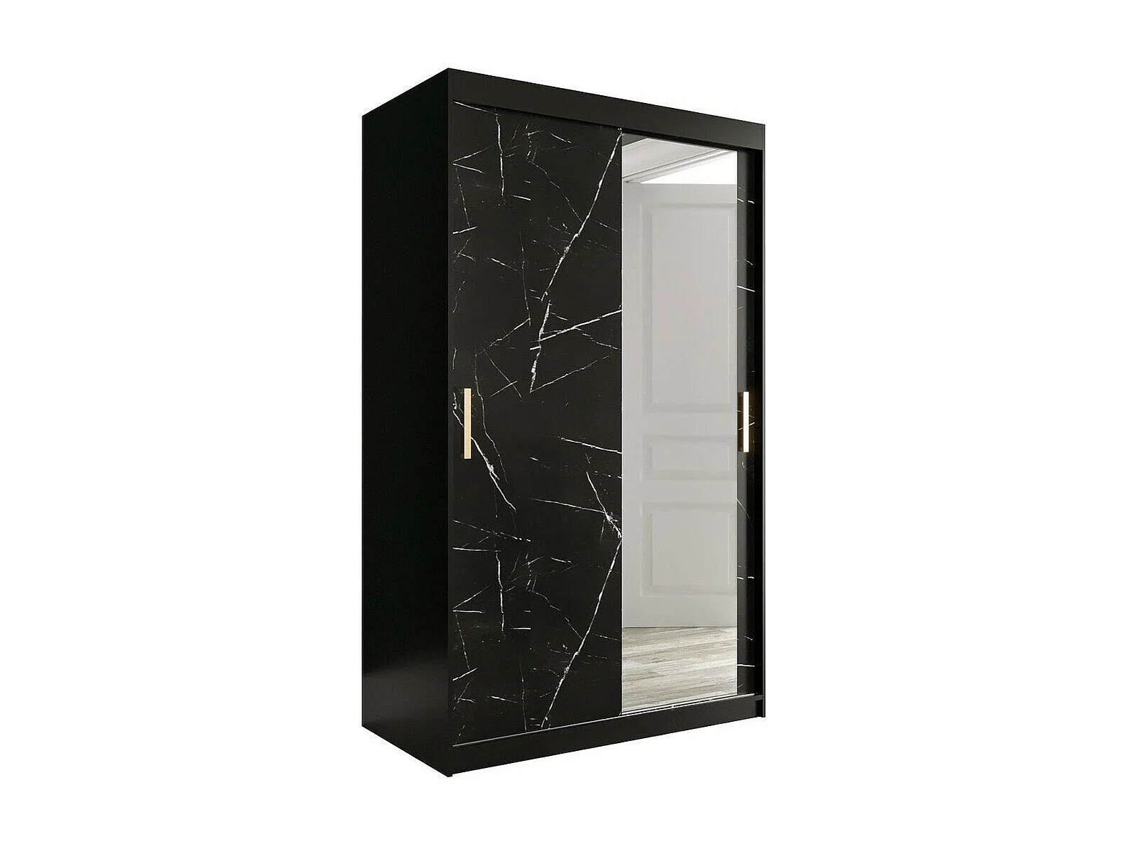 Armadio Hartford 259, Marmo nero|Nero opaco, 200x120x62cm, Porte armadi: Scorrevoli
