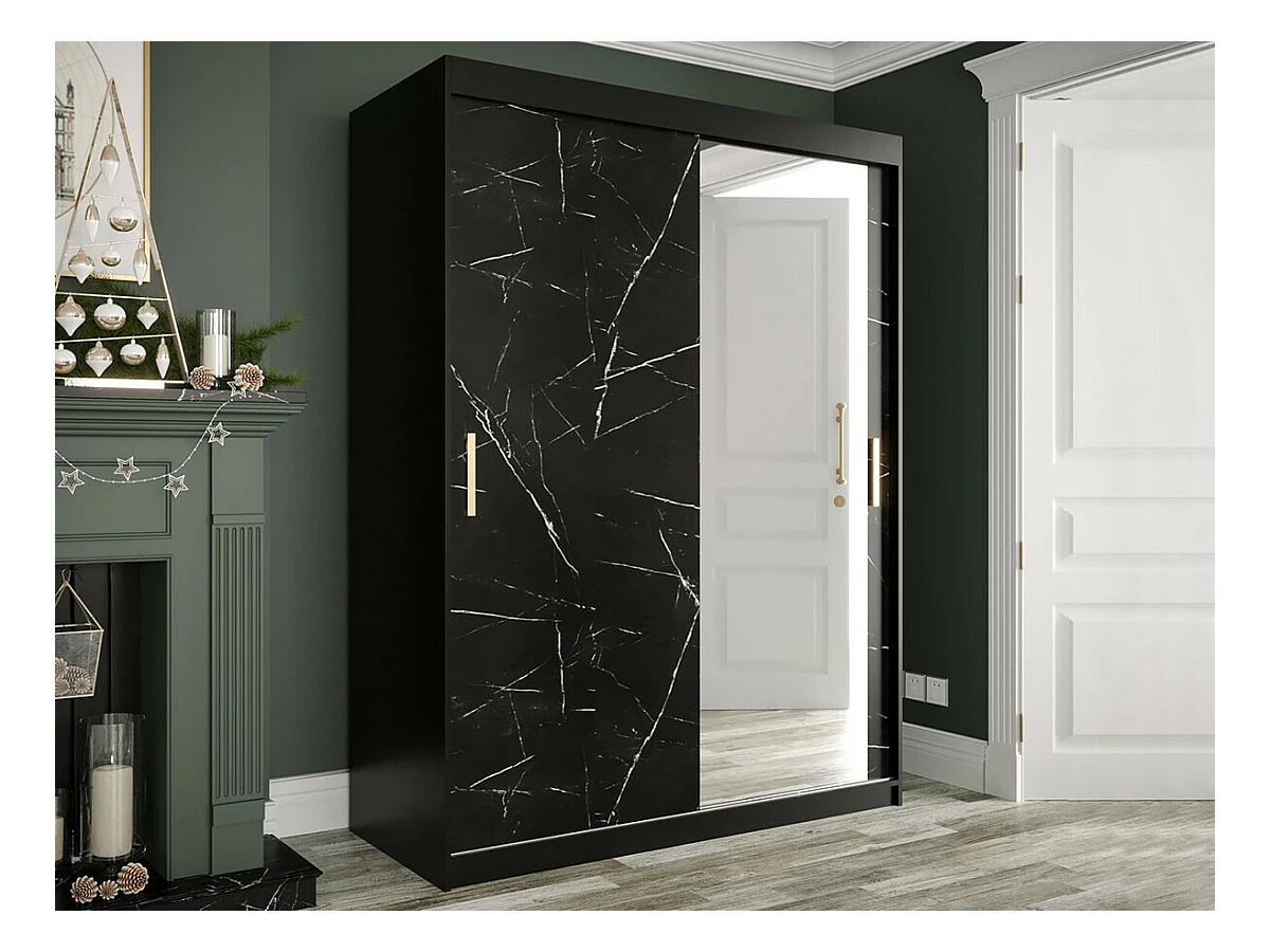 Armadio Hartford 260, Marmo nero|Nero opaco, 200x150x62cm, Porte armadi: Scorrevoli