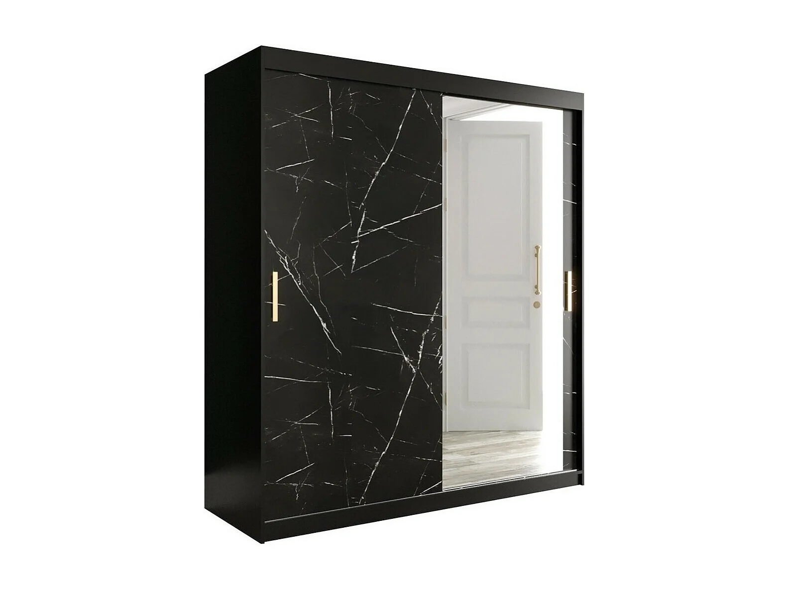 Armadio Hartford 261, Marmo nero|Nero opaco, 200x180x62cm, Porte armadi: Scorrevoli