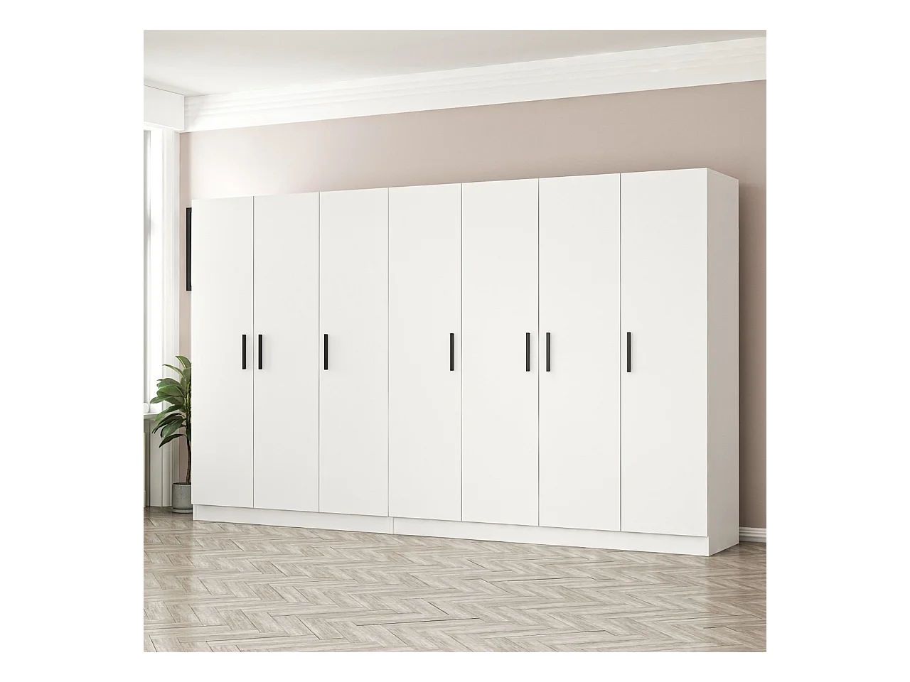 Guardaroba Kailua L156, Bianco, 190x315x52cm, Porte guardaroba: Con cerniere