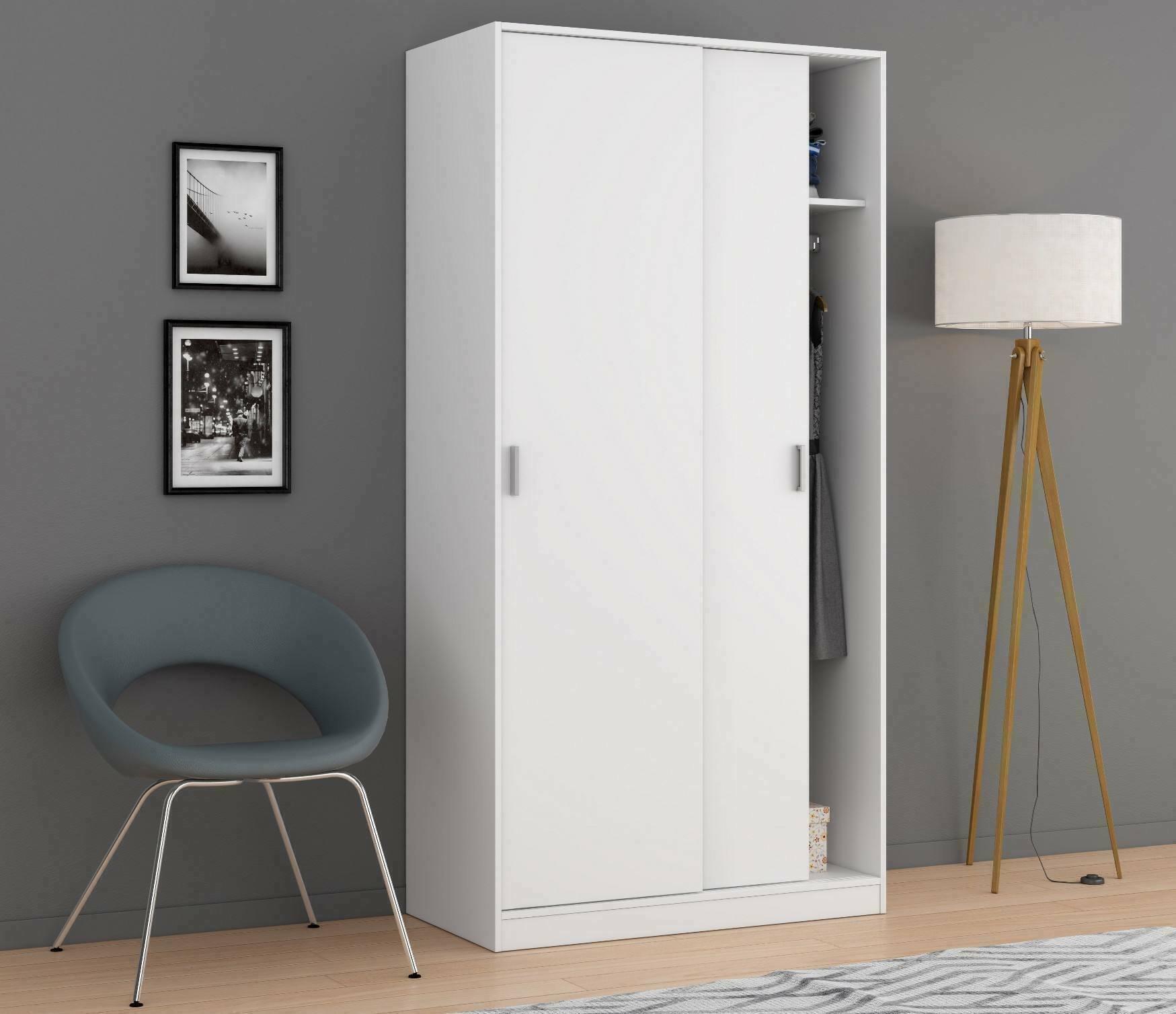 GUARDAROBA - Armadio per camera da letto a 2 ante scorrevoli, Mobile con ripiano e barra appendiabiti, 100x50h200 cm, Bianco. STRUTTURA E UTILIZZO - Armadio guardaroba completo di due ante scorrevoli con maniglie, internamente una barra appendiabiti e un ripiano fisso, grazie all'organizzazione interna dei suoi spazi offre un ampio spazio di contenimento - L'intera struttura del mobile con dettaglio vintage è perfetta per arredare in modo salvaspazio una camera matrimoniale, una cameretta per bambini oppure la stanza degli ospiti - La barra appendiabiti permette di riporre i vestiti e gli abiti in modo ordinato - Adatto a contenere accessori, borse, scarpe o articoli di abbigliamento. CERTIFICAZIONI E INNOVAZIONI - Articolo d'arredamento di design con certificazione PEFC, perfetto per arredare un ambiente moderno e luminoso: è il prodotto ideale per chi è alla ricerca di un prodotto funzionale e salvaspazio per la propria casa o il proprio appartamento - Garanzia 2 anni dalla data di acquisto - Fornito smontato con libretto di istruzioni al montaggio. CARATTERISTICHE TECNICHE - Prodotto composto in legno laminato con spessore di 15 mm, materiale resistente agli urti e i graffi, duraturo nel tempo ed impermeabile - Bordi con rifinitura in melaminico con spessore di 0,6 mm - Schienale mobile di colore bianco in MDF con spessore di 3mm - Classificazione secondo contenuto o rilascio di formaldeide di TIPO E1 - Guide scorrevoli in ABS per le ante - Tubo appendiabiti estraibile in alluminio - Maniglie in ABS di colore grigio - Peso massimo supportato prodotto: Kg 45 - Peso massimo supportato ripiano: Kg 5 - Peso massimo supportato tubo appendiabiti: Kg 8. DIMENSIONI IN CM - Guardaroba: Lunghezza: 100 Larghezza: 50 Altezza: 200