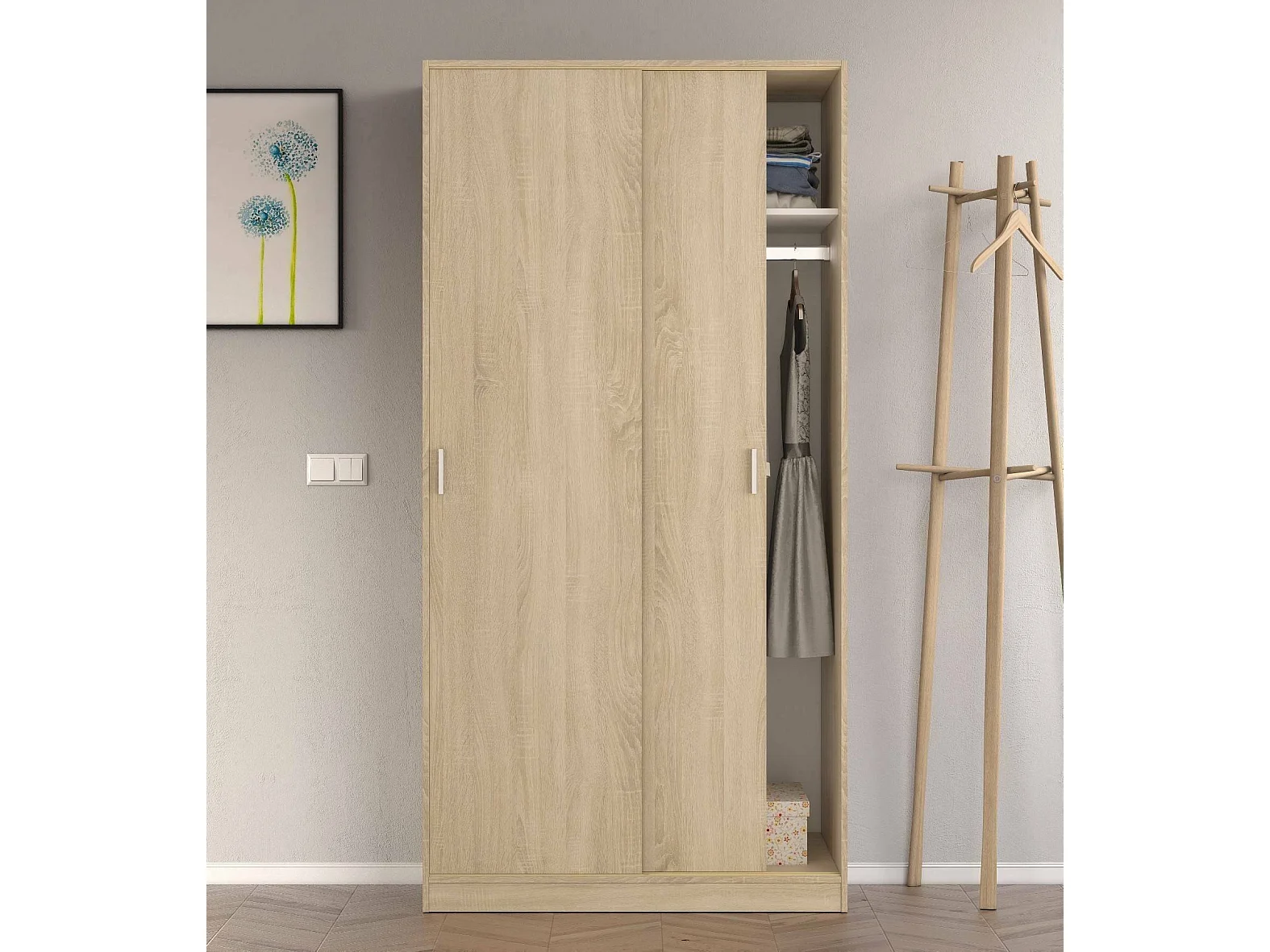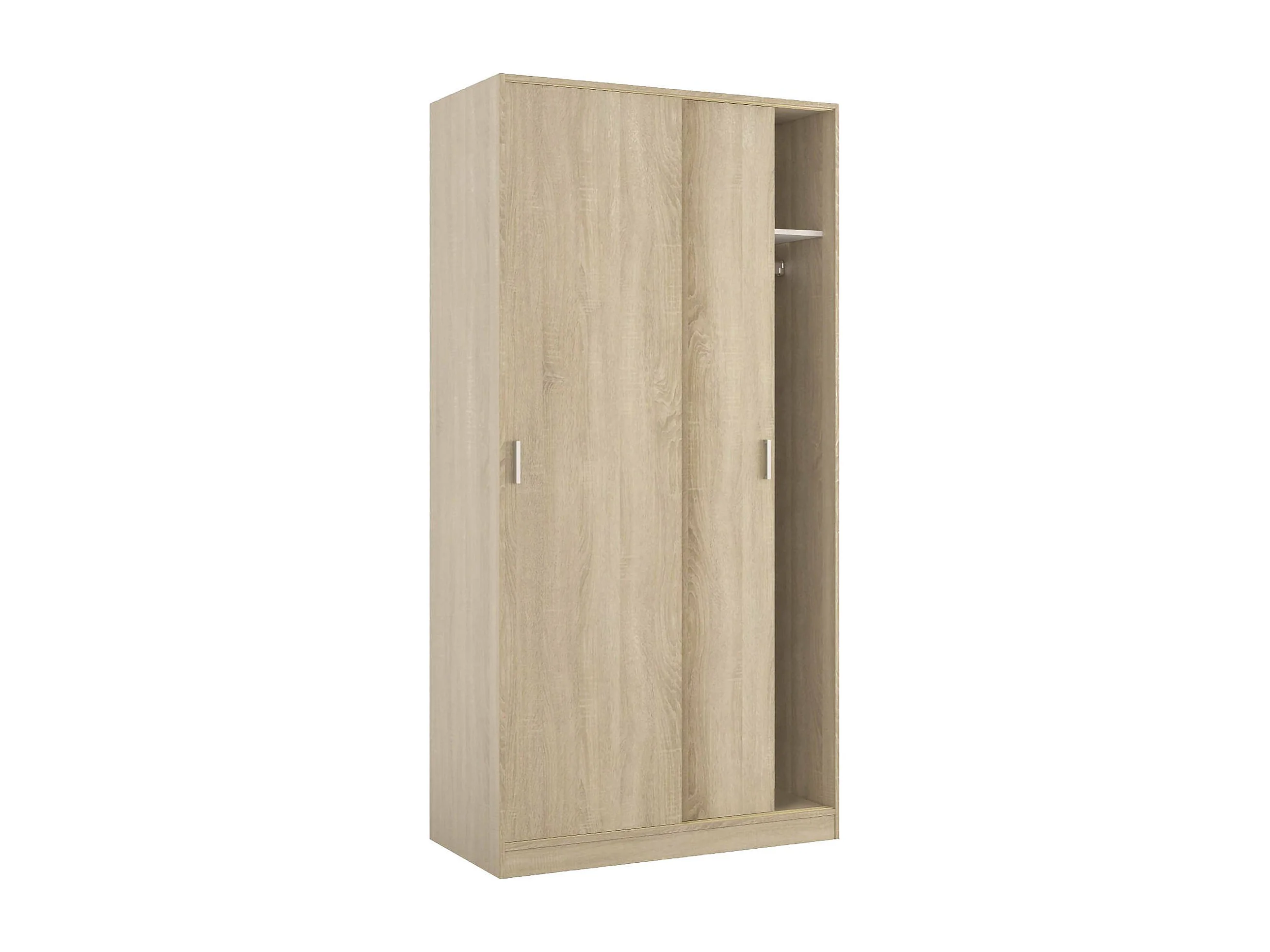 Guardaroba Lansing, Armadio per camera da letto a 2 ante scorrevoli, Mobile con ripiano e barra appendiabiti, 100x50h200 cm, Rovere