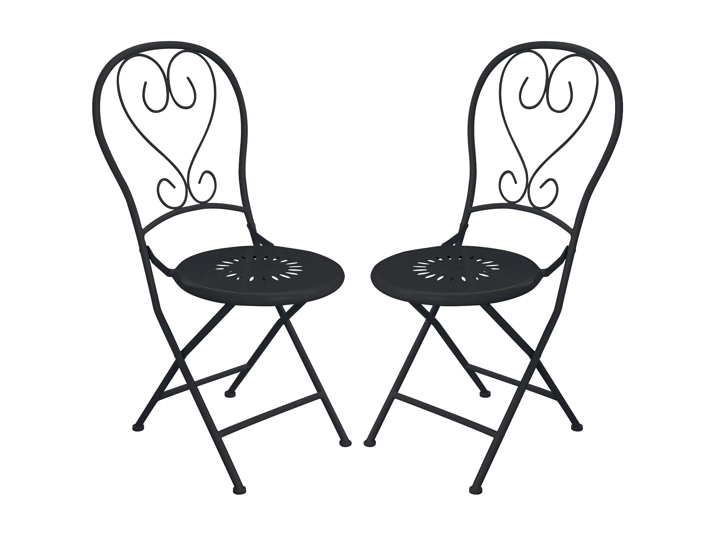 Lotto di 2 sedie da giardino pieghevoli in metallo effetto ferro battuto Antracite - GUERMANTES di MYLIA