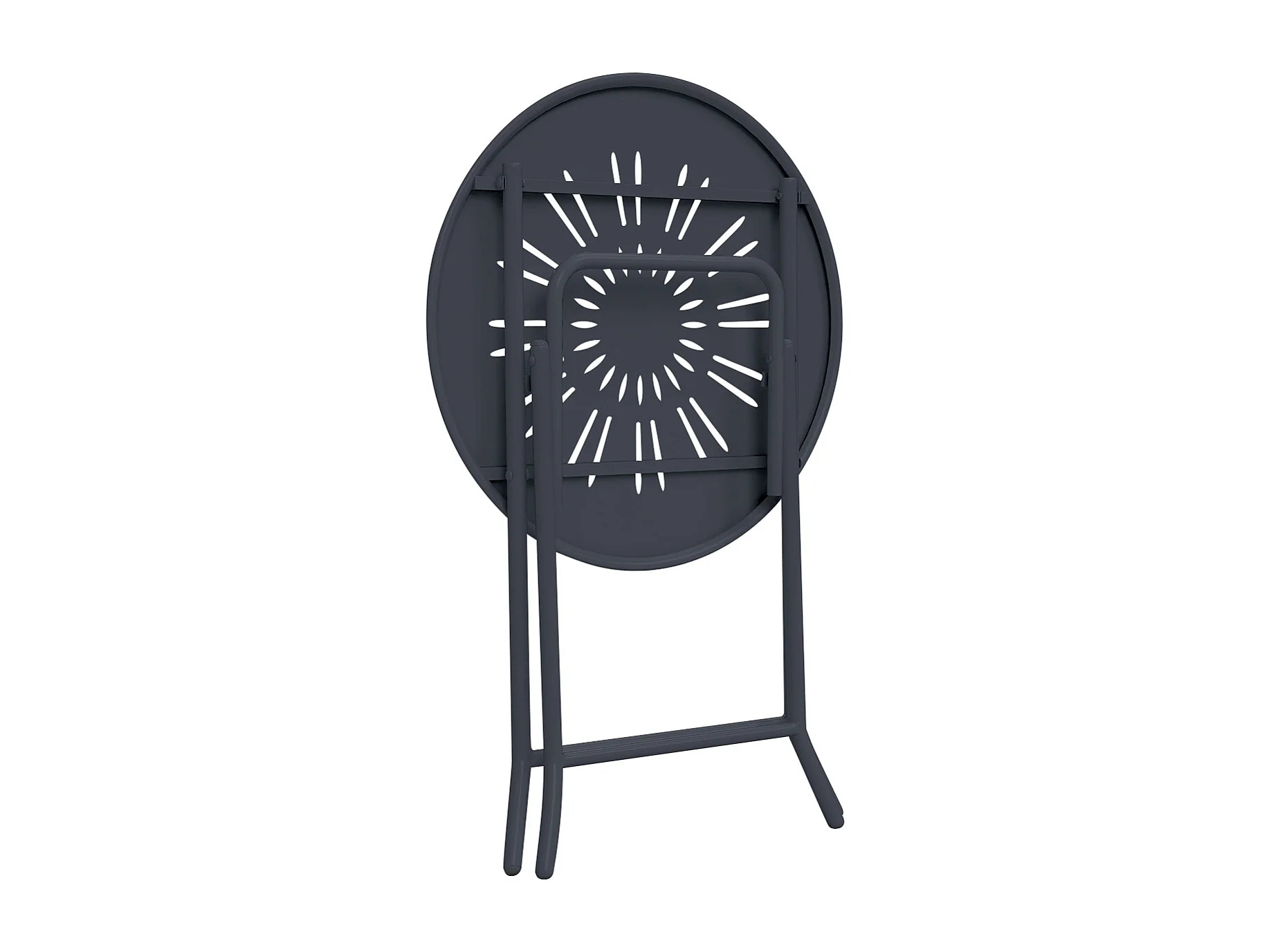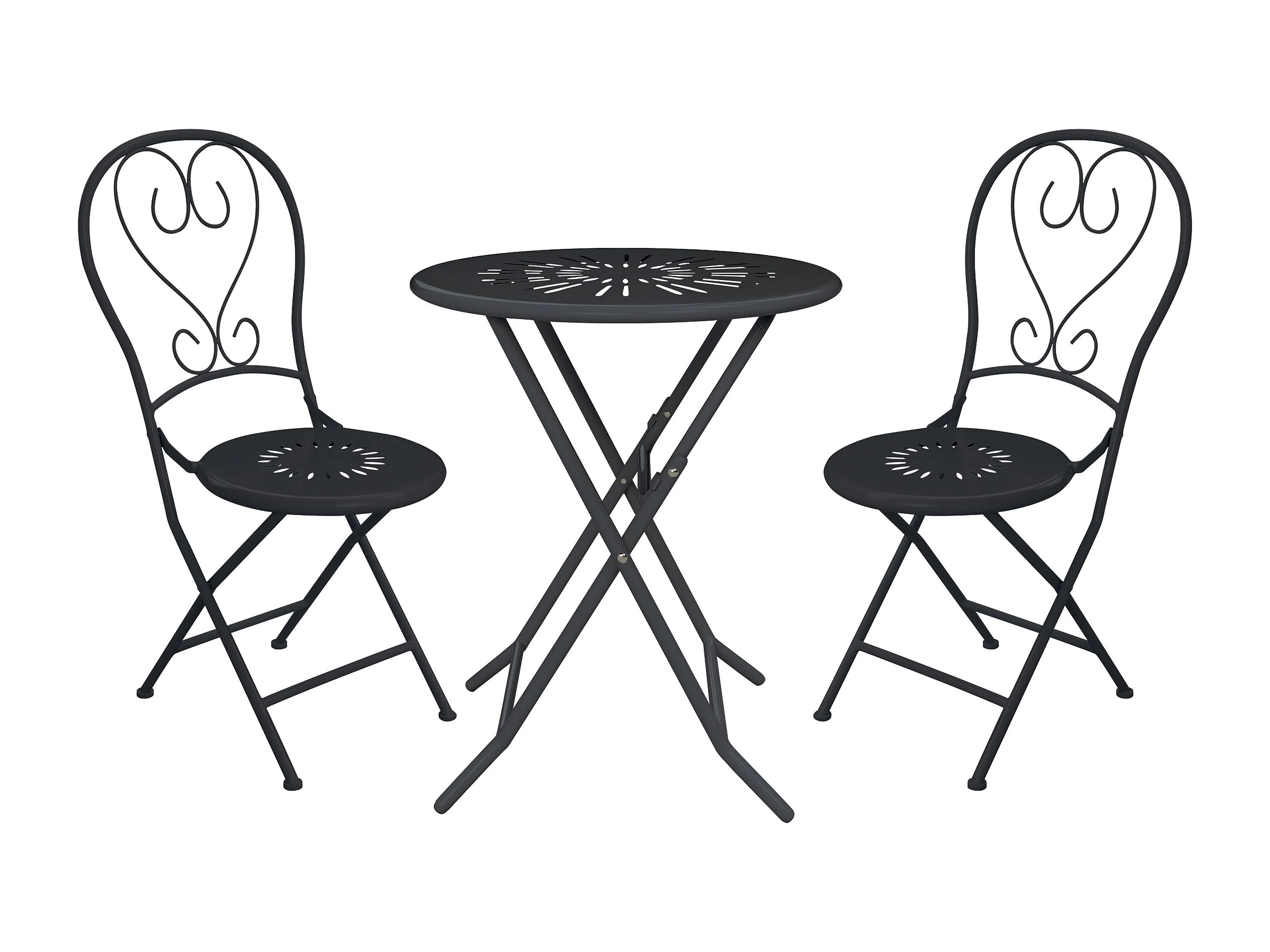 Sala da pranzo da giardino pieghevole in metallo effetto ferro battuto: un tavolo D.60 cm e 2 sedie - Antracite - GUERMANTES di MYLIA