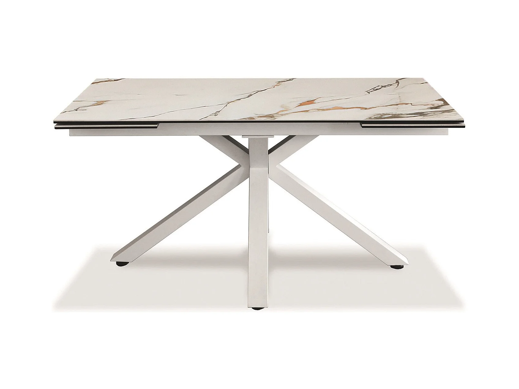 Axis, Tavolo allungabile con top in ceramica su vetro. Gambe in metallo verniciato. Allunghe interne. (90cm X 160-240cm H. 76cm)| Duzzle