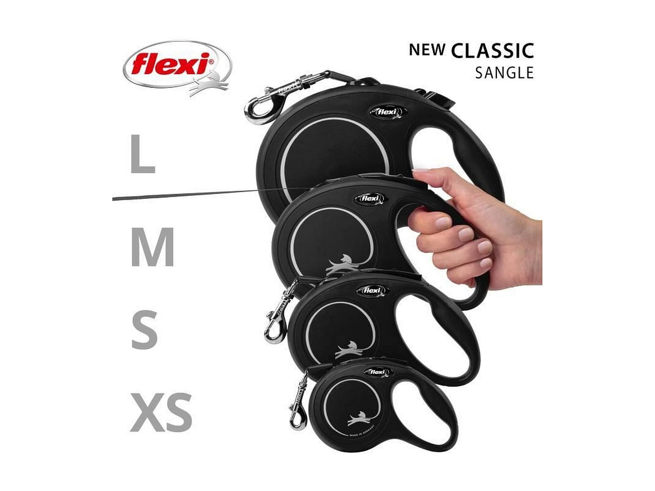 Guinzaglio flessibile nero con avvolgitore 5 m