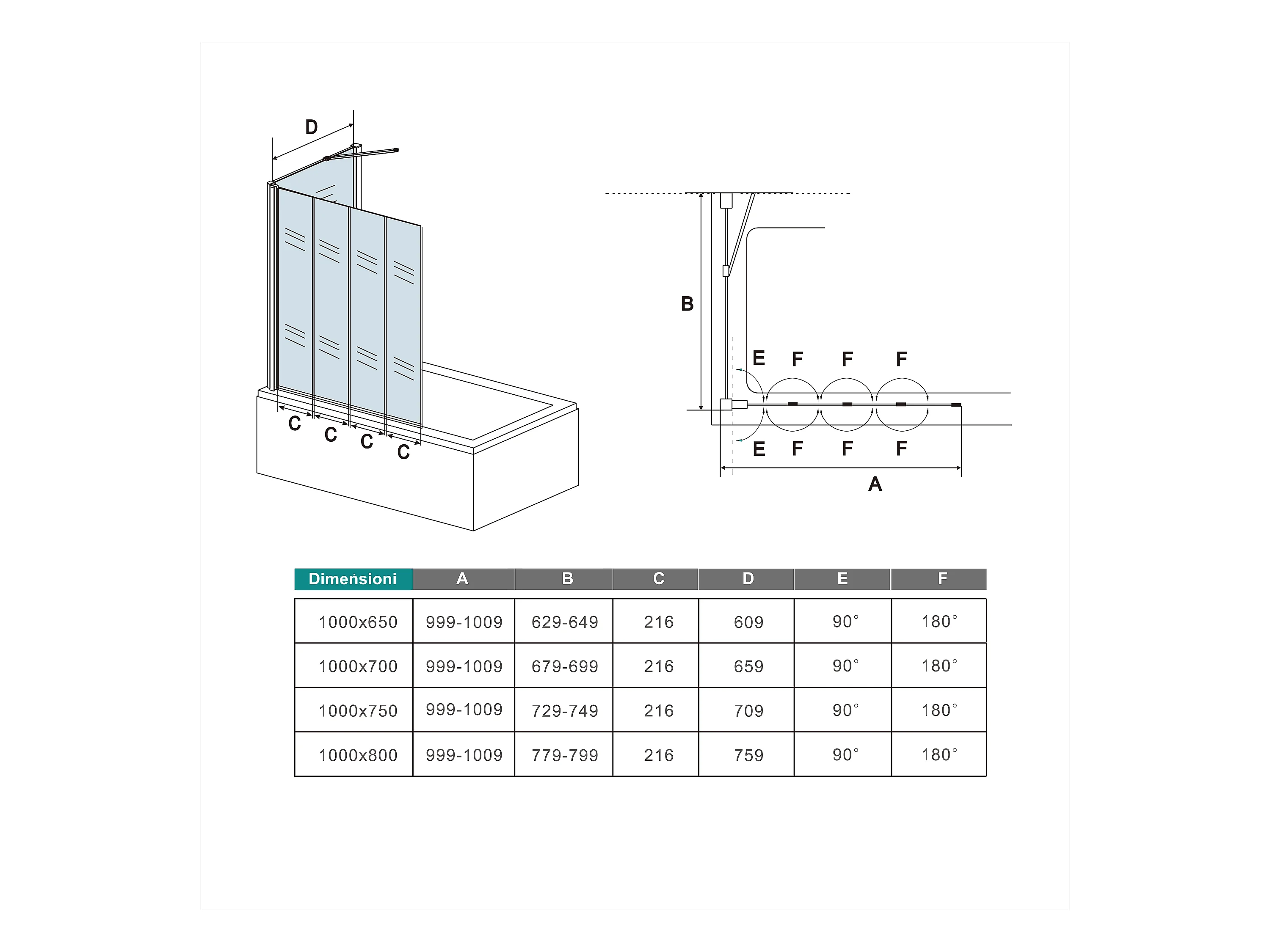 120x140 cm Parete Per Vasca Apribile 180 Gradi Montaggio Verso Destro Irreversibile in Vetro Temperato 6 mm Anticalcare Fascia Centrale Opaca