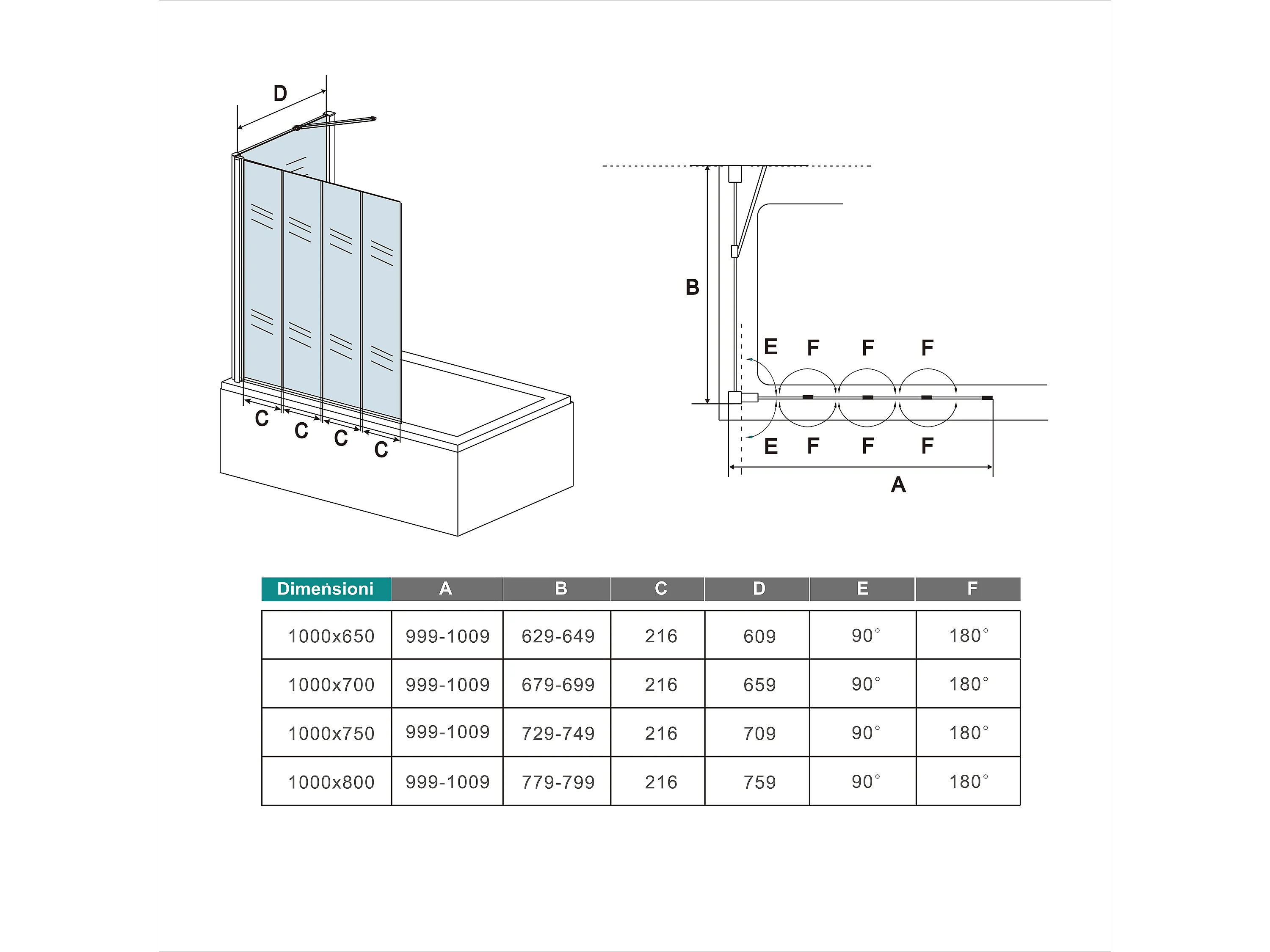 H.140 cm Parete Doccia Sopravasca Angolare Pieghevole 100 cm (4 Antine)con Parete Laterale 75 cm Vetro Temperato Telaio Cromato Lucido