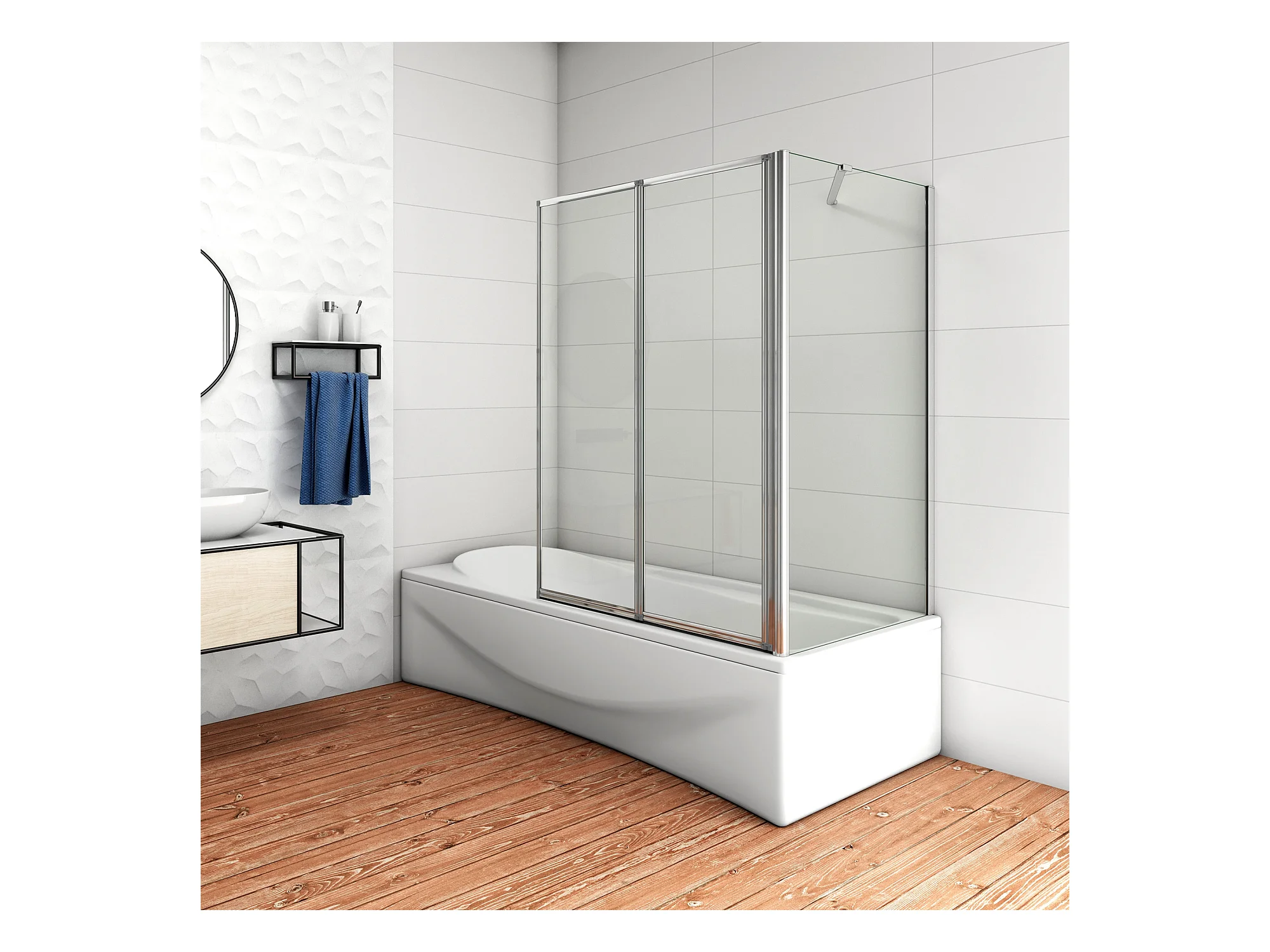 H.140 cm Parete Doccia Per Vasca con Lato Fisso 130x80 cm 3 Ante Pieghevoli a Libro Vetro Temperato 6 mm Trasparente Anticalcare Telaio Cromo Lucido