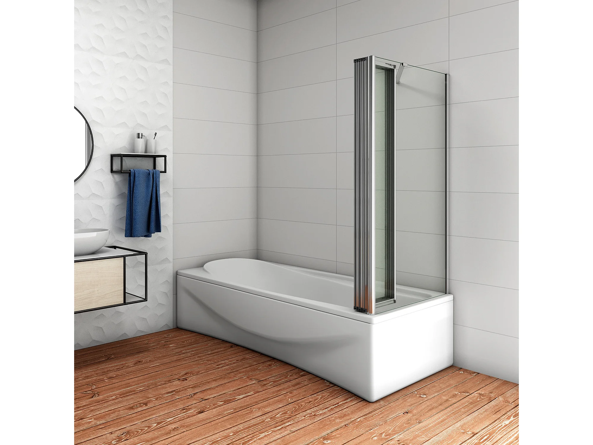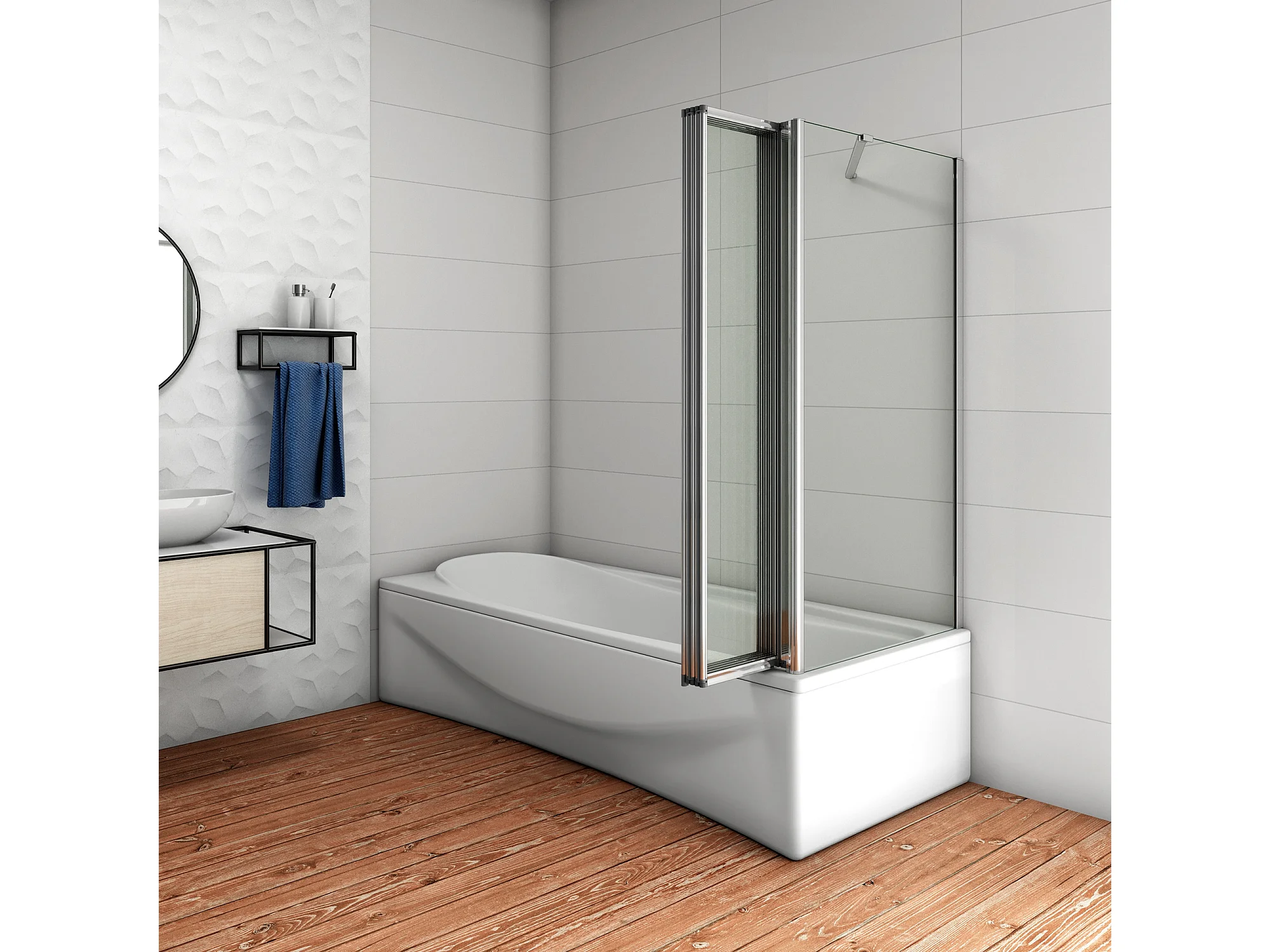 90x140cm Parete Doccia Sopravasca Angolare 2 Ante Pieghevoli con Parete Laterale 75cm Vetro Temperato 6 mm Anticalcare Portasciugamani Cromato Lucido
