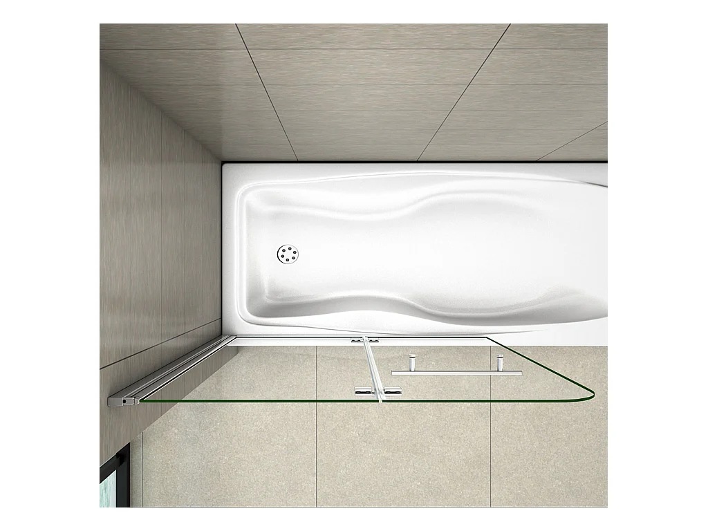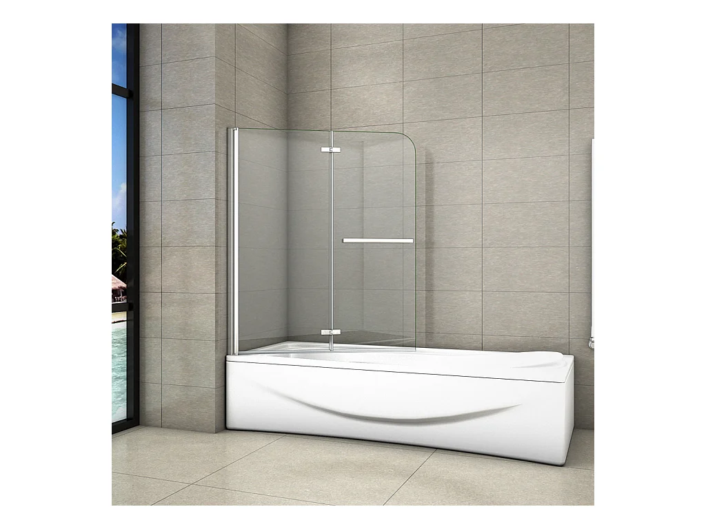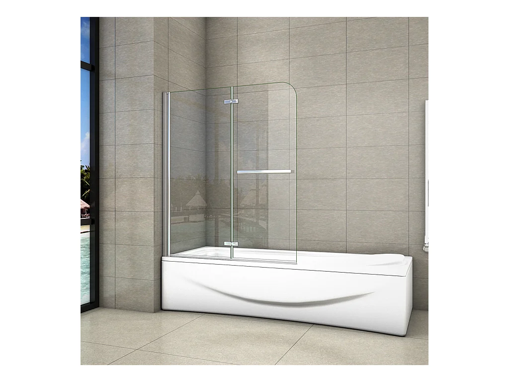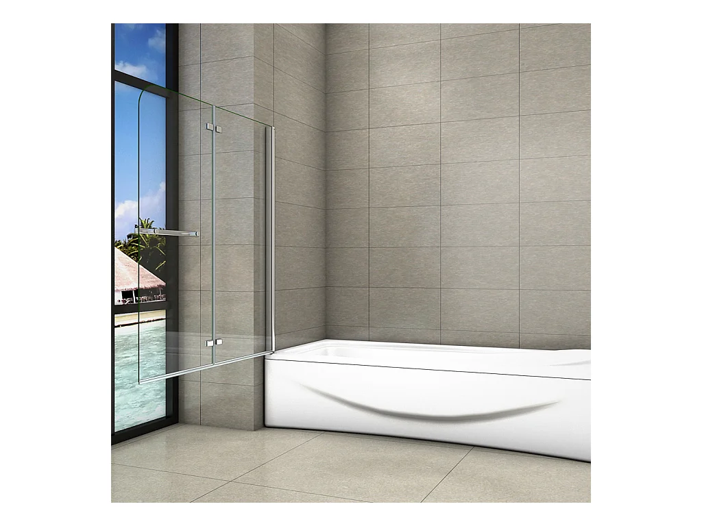 H.140 cm Sopravasca Parete Vasca da Bagno 100 cm Due Ante Movibili con Maniglia Portasciugamani Vetro 6 mm Temperato Anticalcare