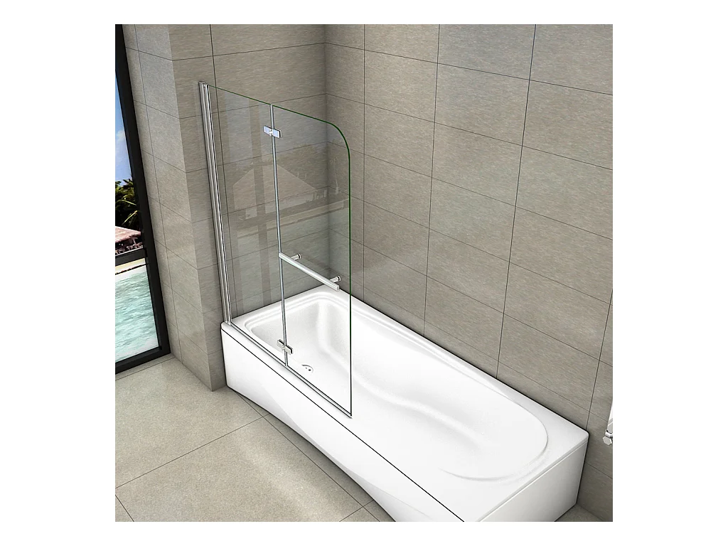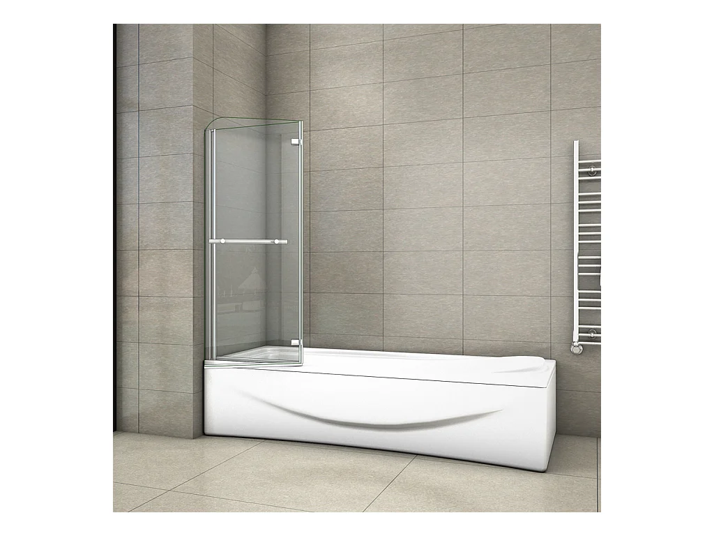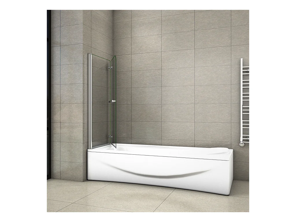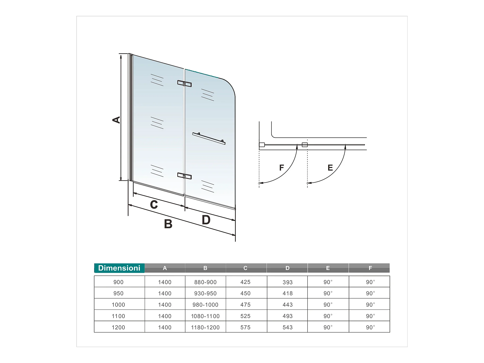 H.140 cm Sopravasca Parete Vasca da Bagno 100 cm Due Ante Movibili con Maniglia Portasciugamani Vetro 6 mm Temperato Anticalcare