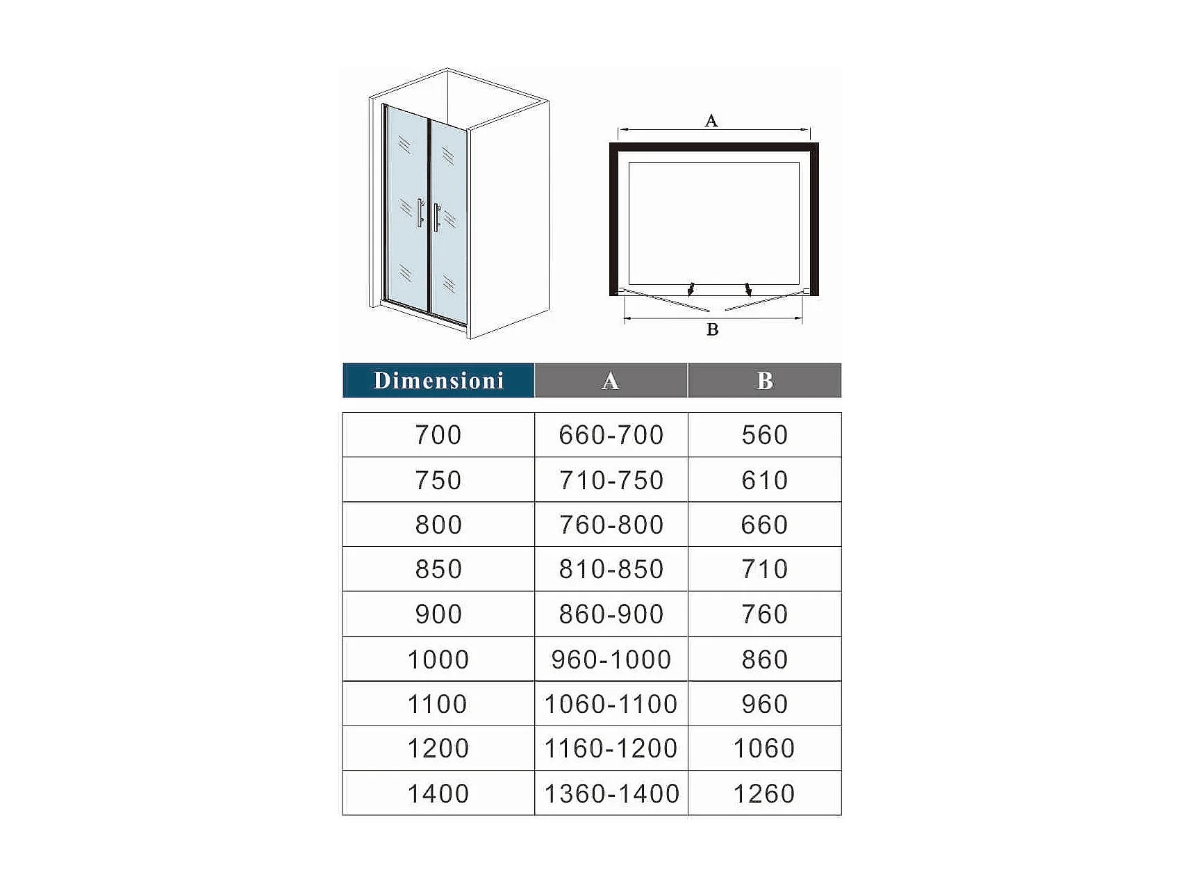 H.185 cm Box Doccia Per Nicchia 110 cm Doppia Porta Battente Saloon In Vetro 6 mm Temperato Satinato Anticalcare