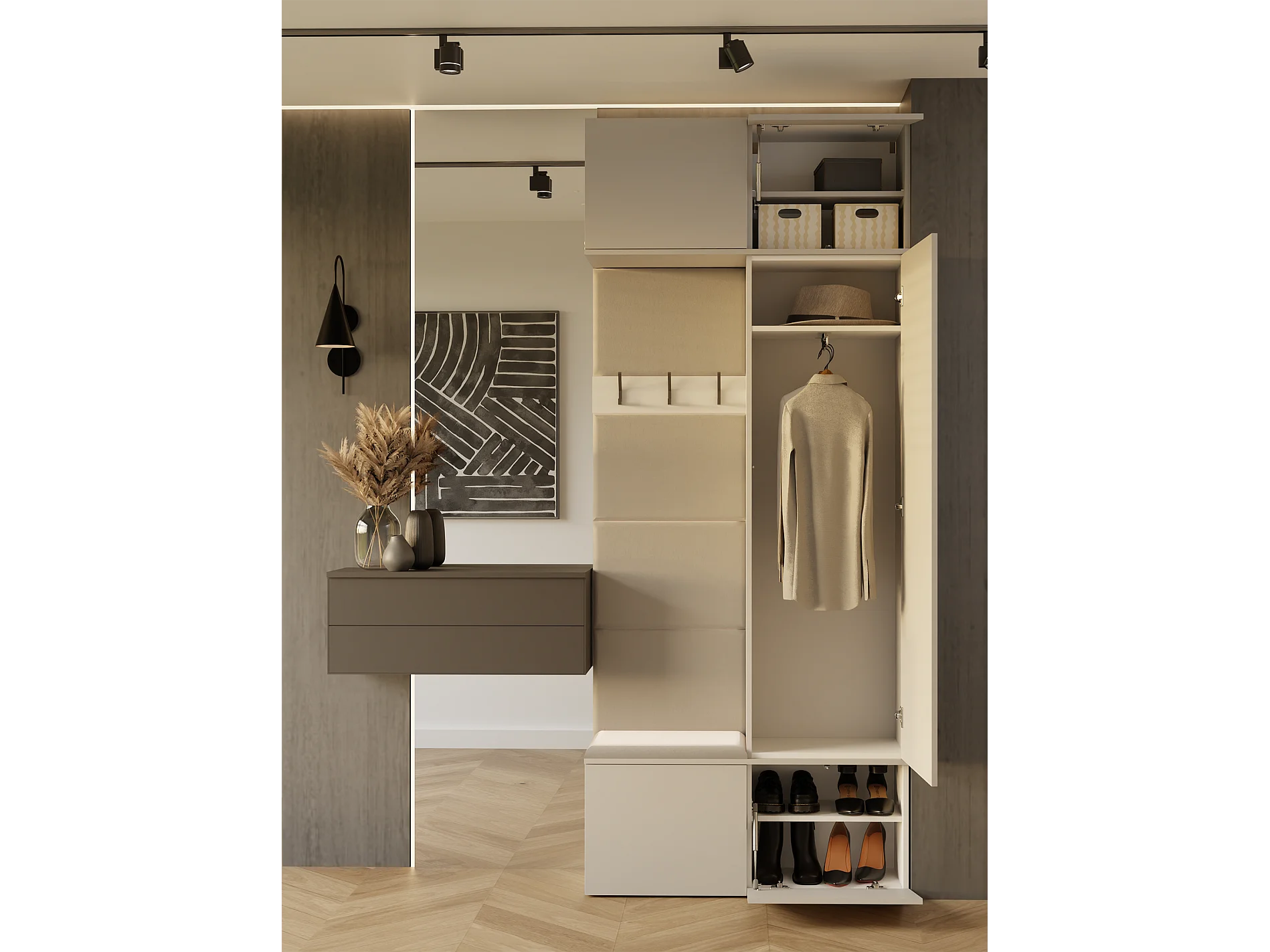 HAGA - Appendiabiti a 3 ganci e armadio - Guardaroba da ingresso con seduta 238x100x35 cm - Beige cashmere