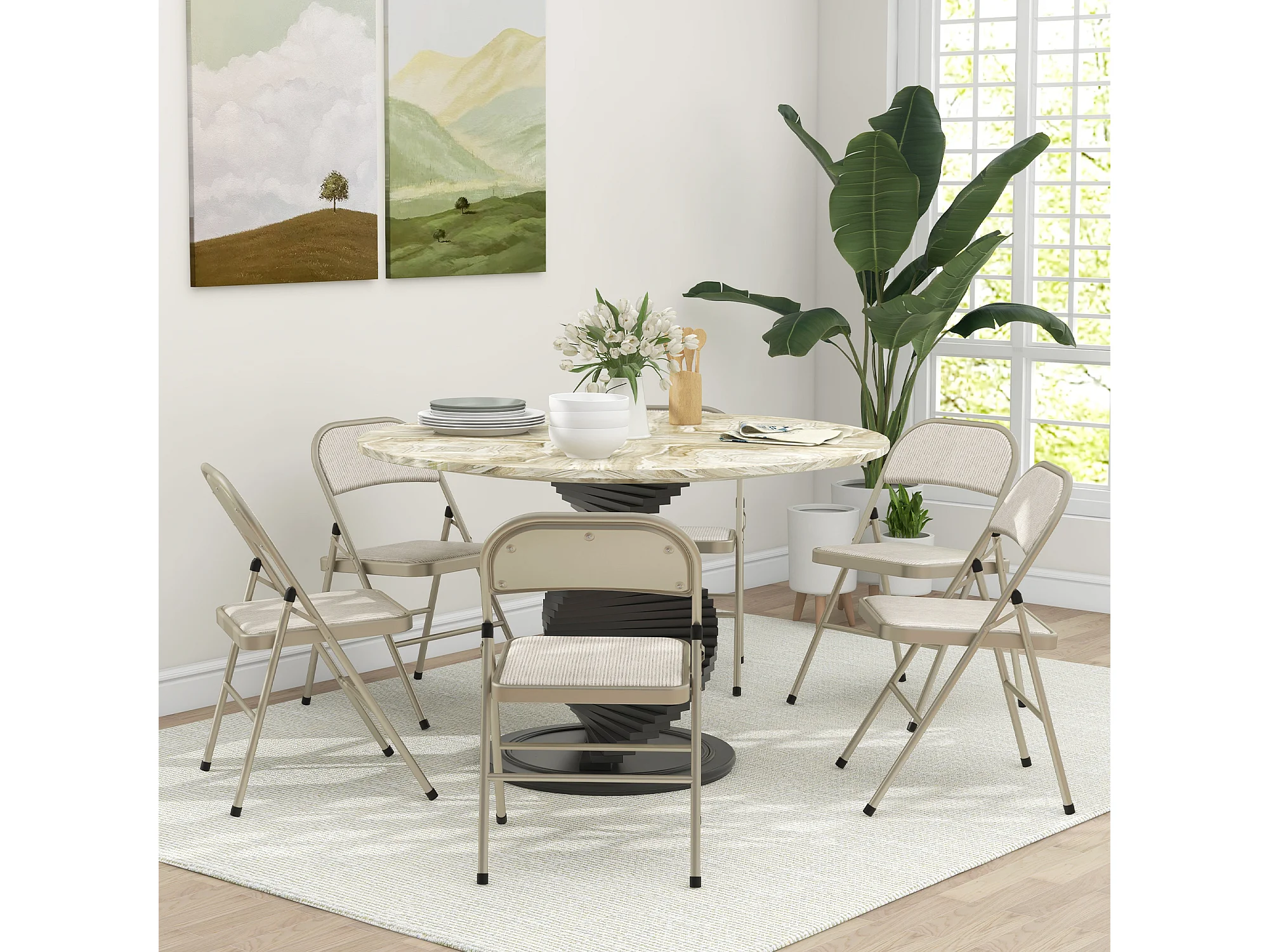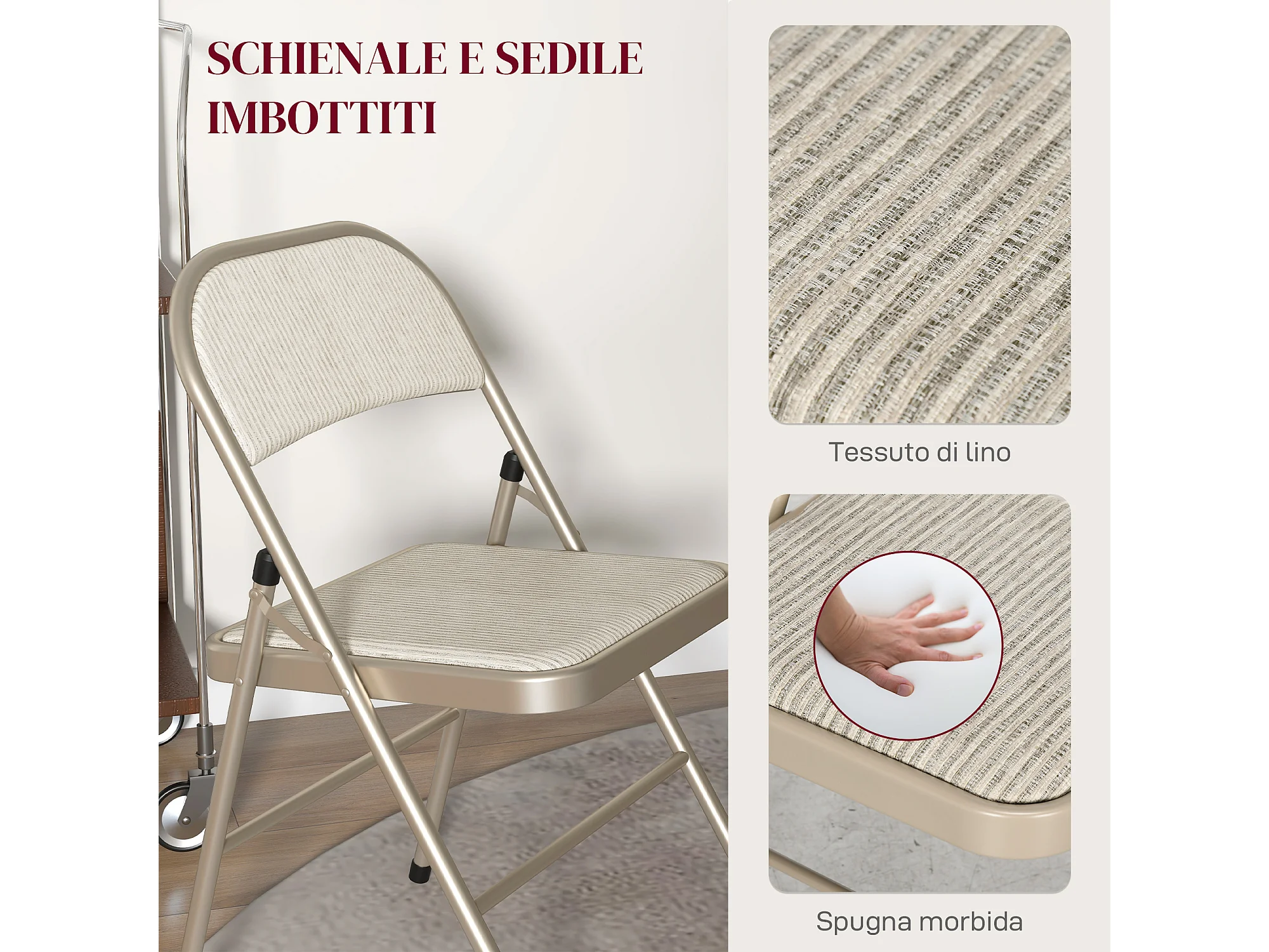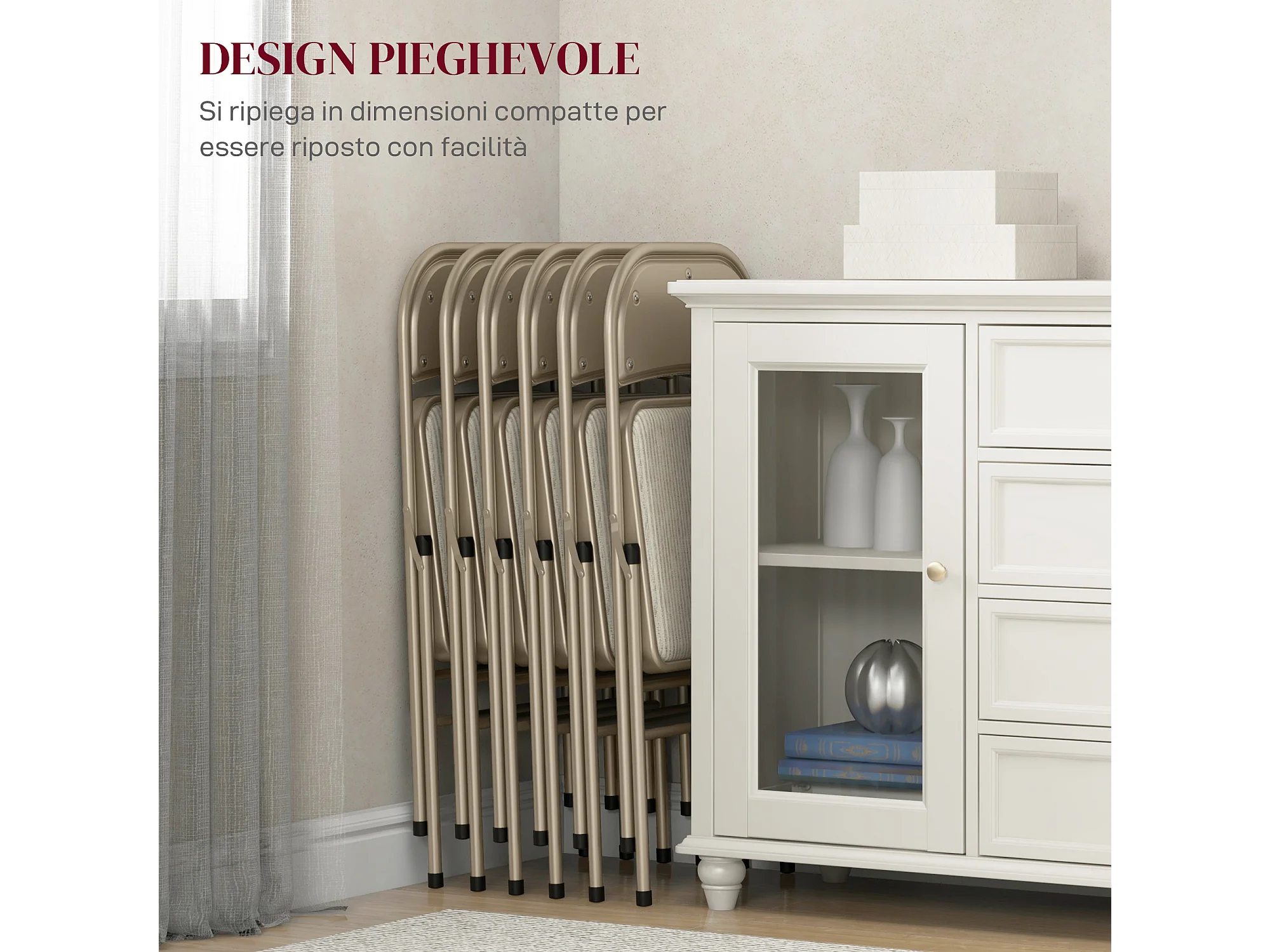 Het di 6 sedie pieghevoli imbottite in poliestere sedie richiudibili salvaspazio in acciaio